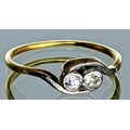 A tested 18ct gold two stone diamond crossover design ring,