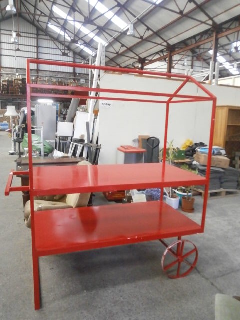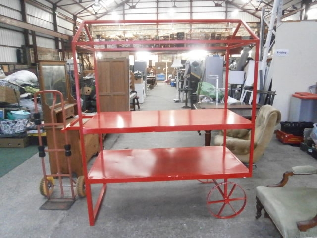 Large red portable retail stand