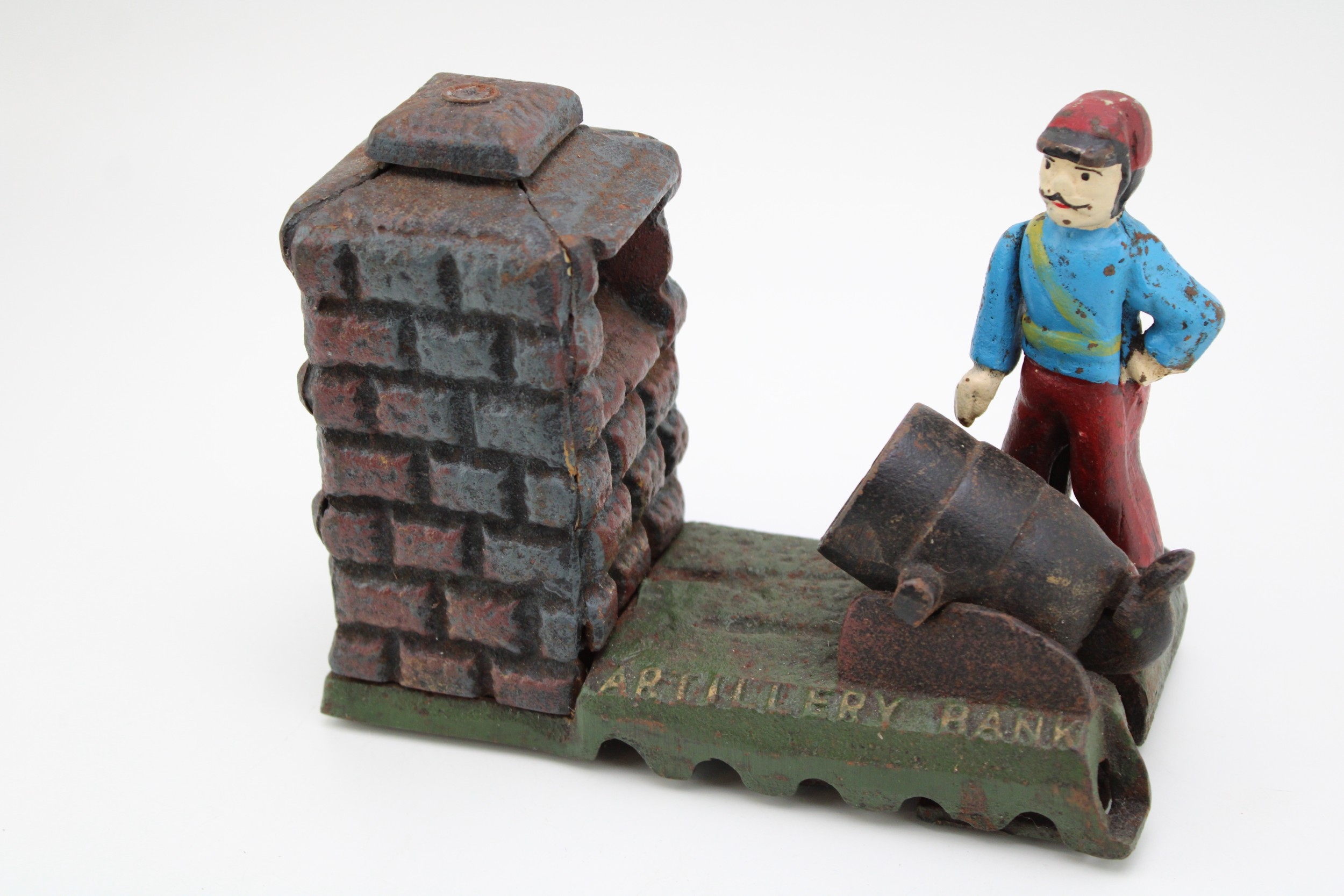 Novelty antique style money box 'Artillery bank, 19cm wide, 14cm tall.