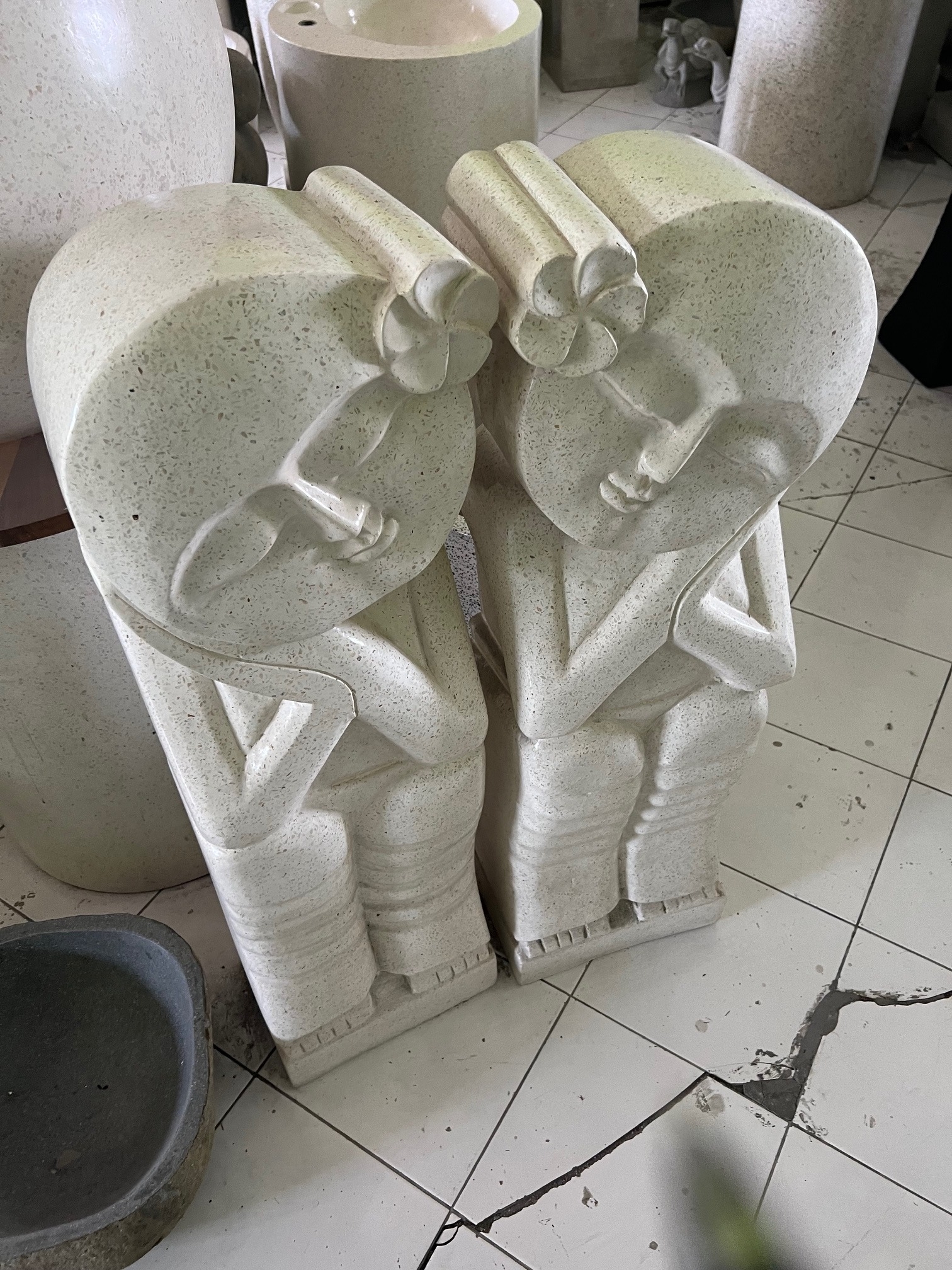 CRATED PAIR HEAVY CAST TERRAZO STONE MATCHING SLEEPING FIGURES