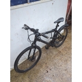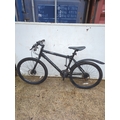 This is a Carrera mountain bike with a sturdy black frame, equipped with disc brakes and dual suspension designed for off-road cycling. The handlebars feature ergonomic grips for enhanced control and comfort during rides. It includes rugged tyres suitable for various terrains, and a comfortable adjustable saddle.
