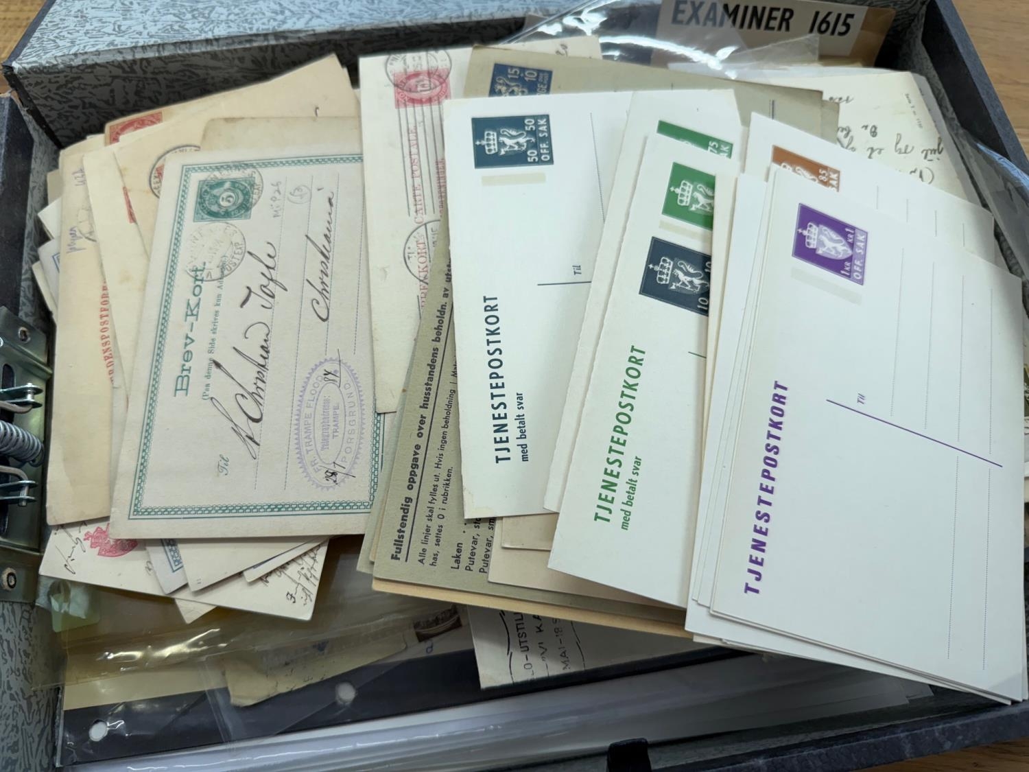 NORWAY 1850s - 1960s covers, postal stationery and cards collection in filing box. Approximately 350 items of useful material includes specialist postal stationery catalogue. Good condition.