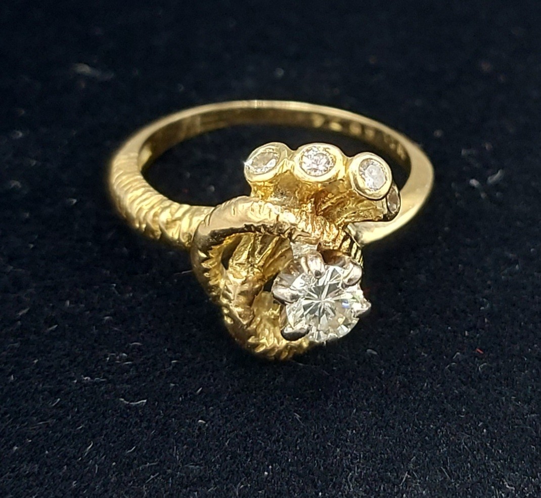 An 18ct gold modern Diamond set ring of shaped form, 4.9gms, ring size M