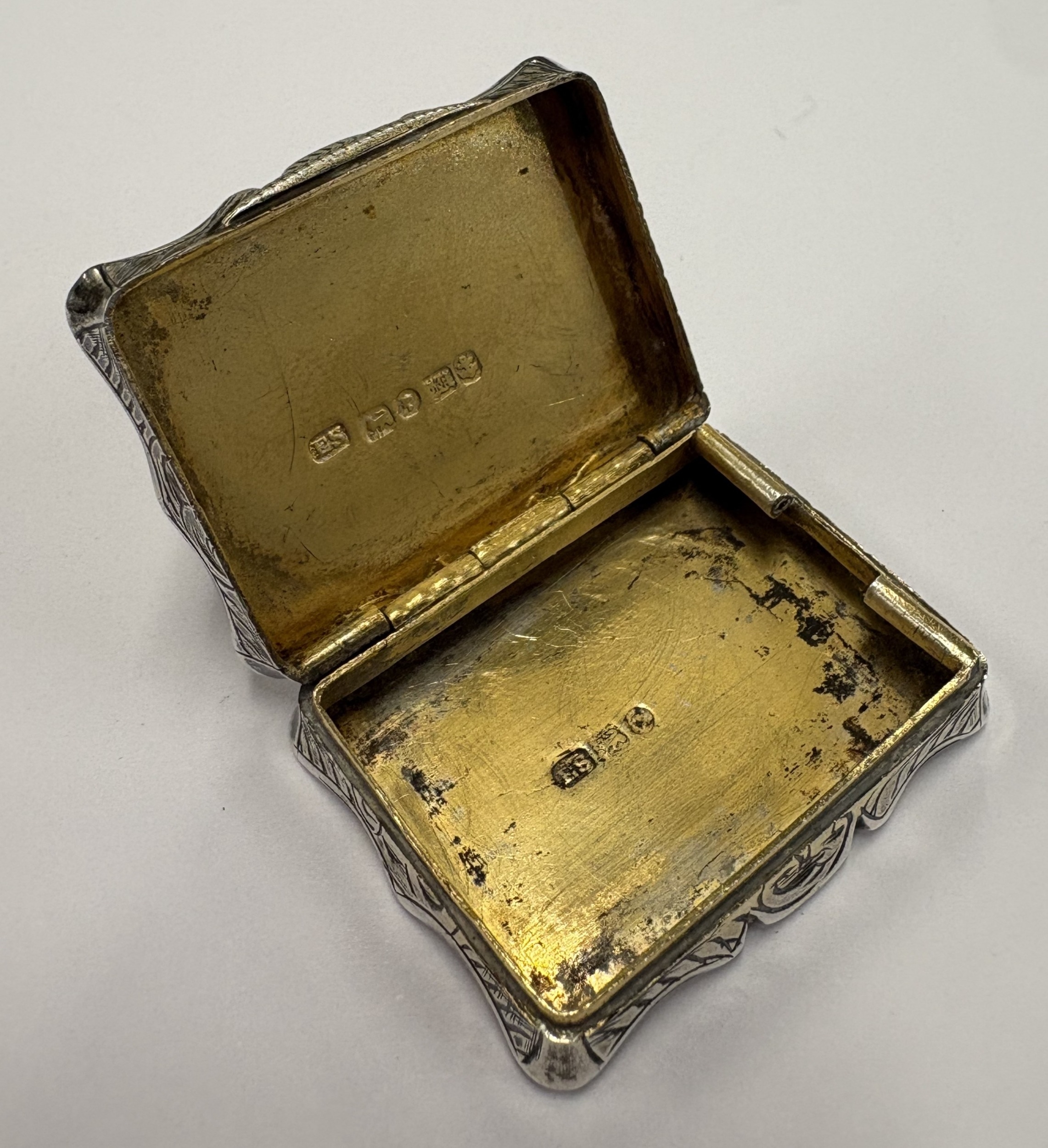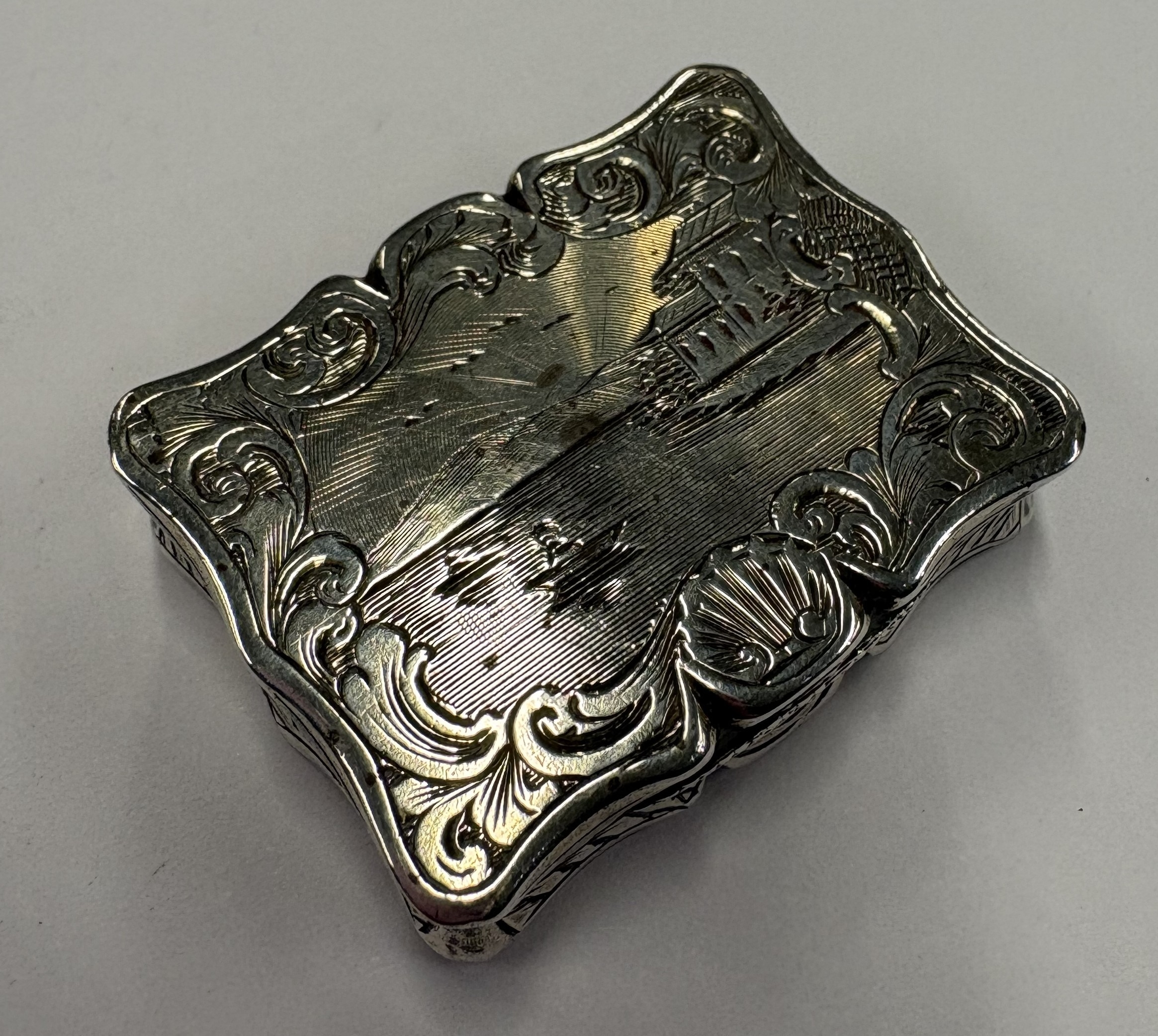 A Victorian silver castle top vinaigrette depicting river scene. Birmingham 1845. By Edward Smith. Approx. 17 grams. Est. £150 - £200.