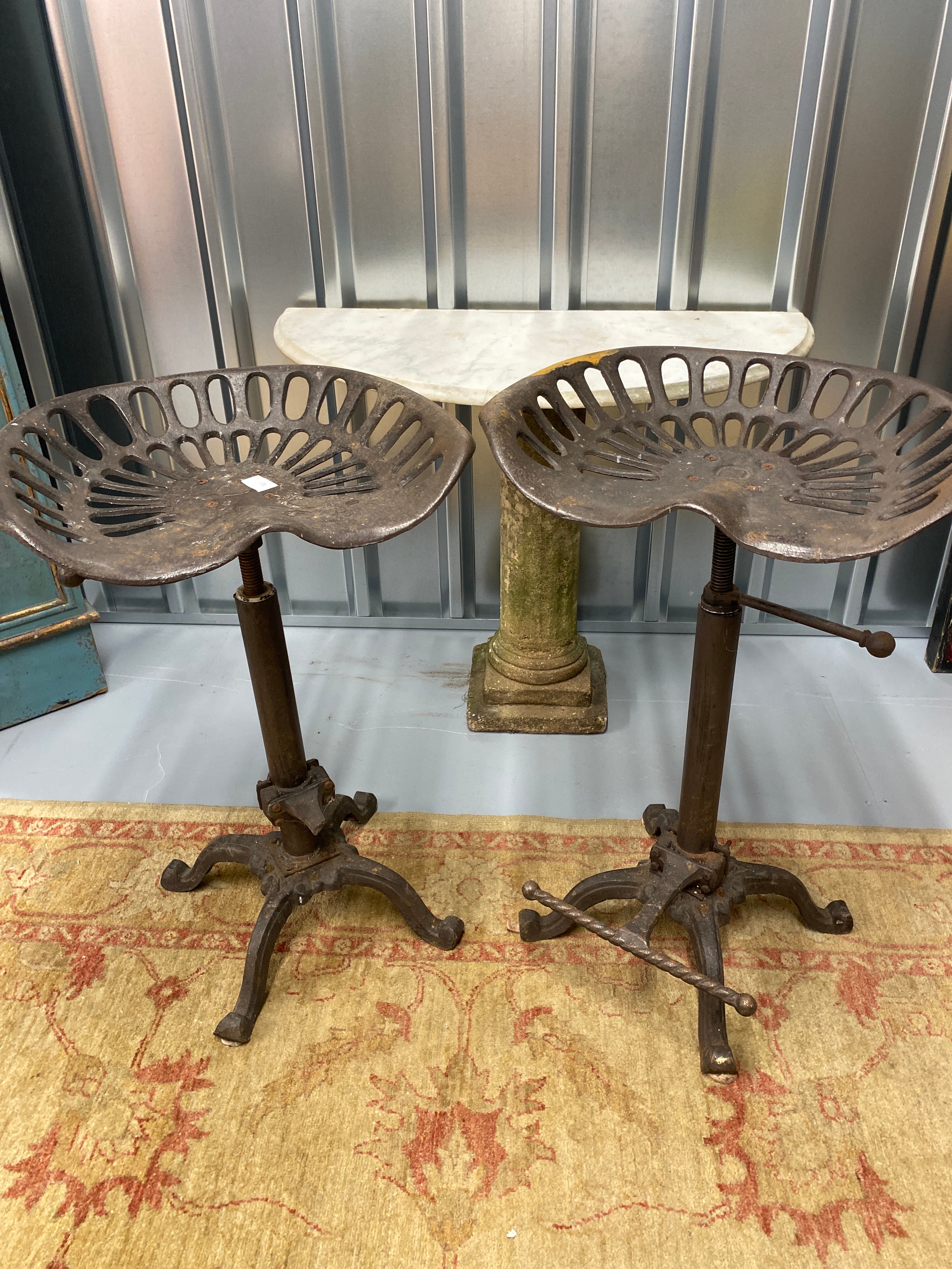 X2 Cast iron tractor seat stools with adjustable height mechanism