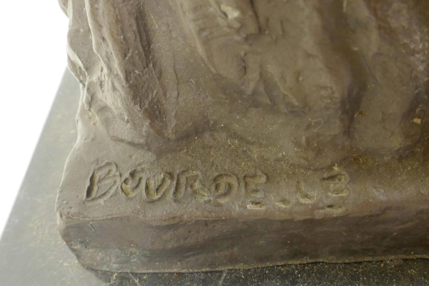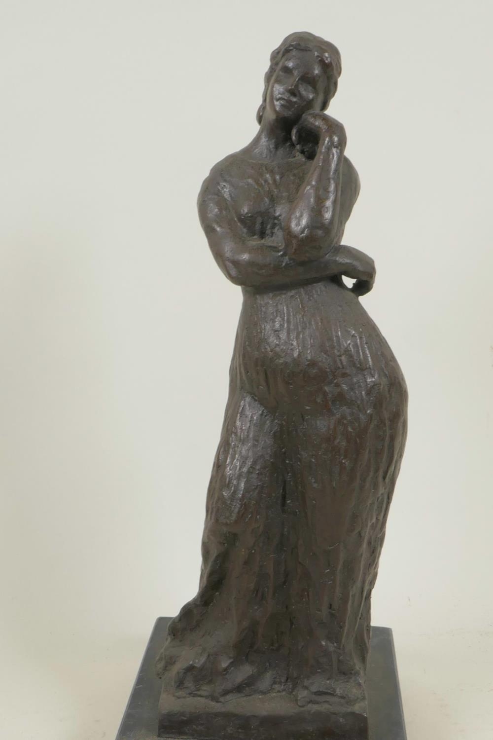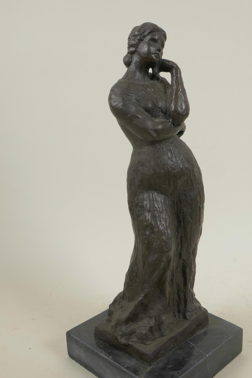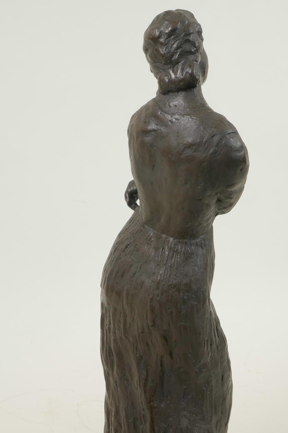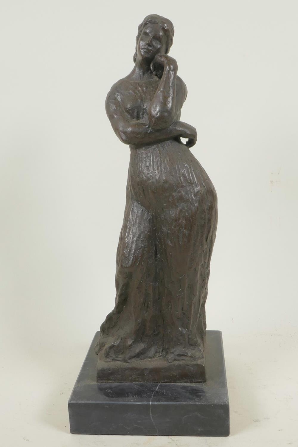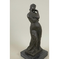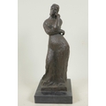 A bronze figure of a lady in a long dress, marked Bourdieu, 13" high