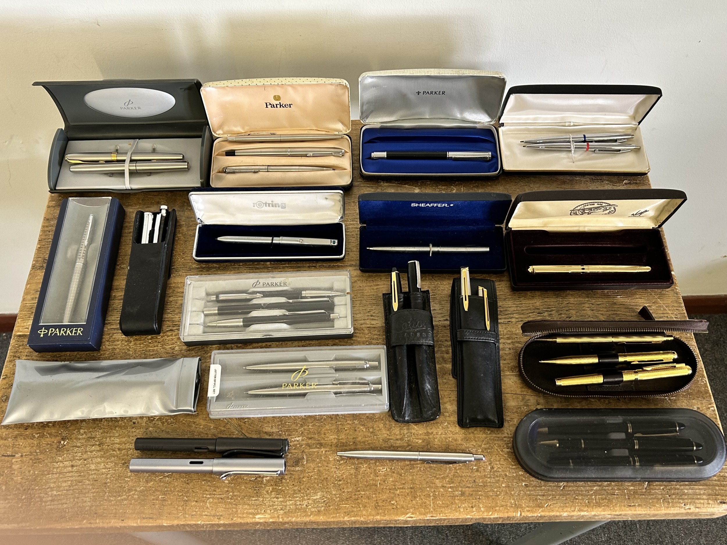Various mainly fountain pens etc, mostly in boxes to include Parker pens (conditions vary, some sets incomplete, pens may not be in the correct boxes)