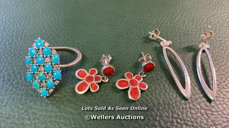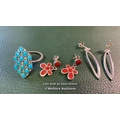 BAG OF SILVER X4 INC. NECKLACE WITH HEART PINGENT, RED FLOWER EARRINGS, EARRINGS, RING WITH STONE