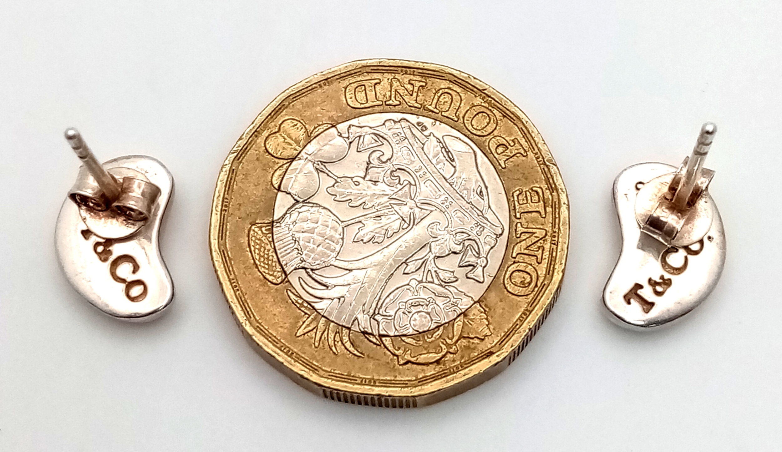 A pair of Tiffany & Co 925 silver bean earrings. Total weight 3.1G. Comes with the dust cover bag.