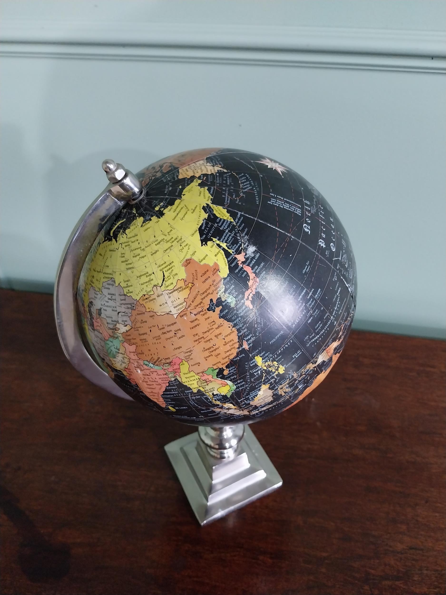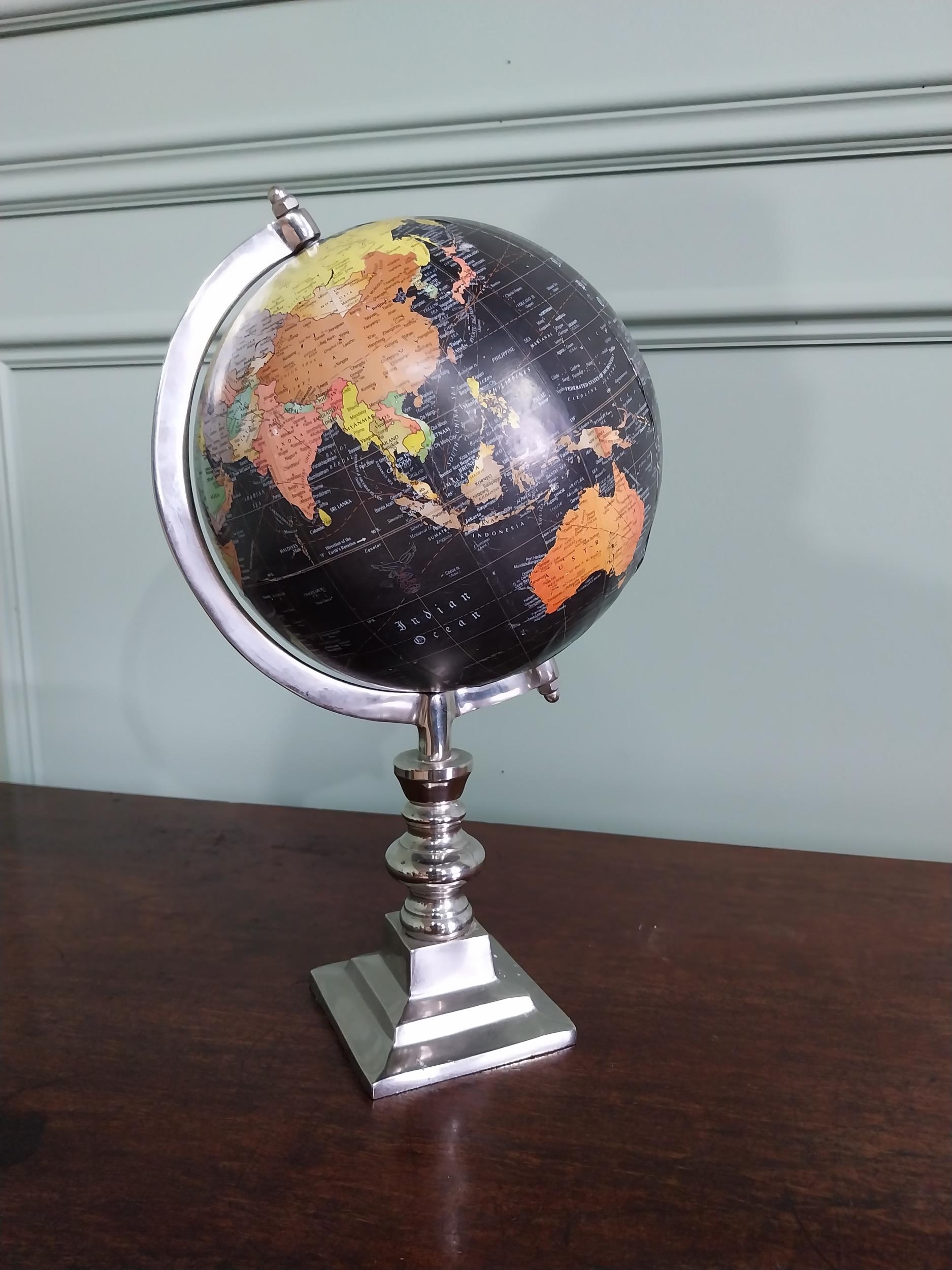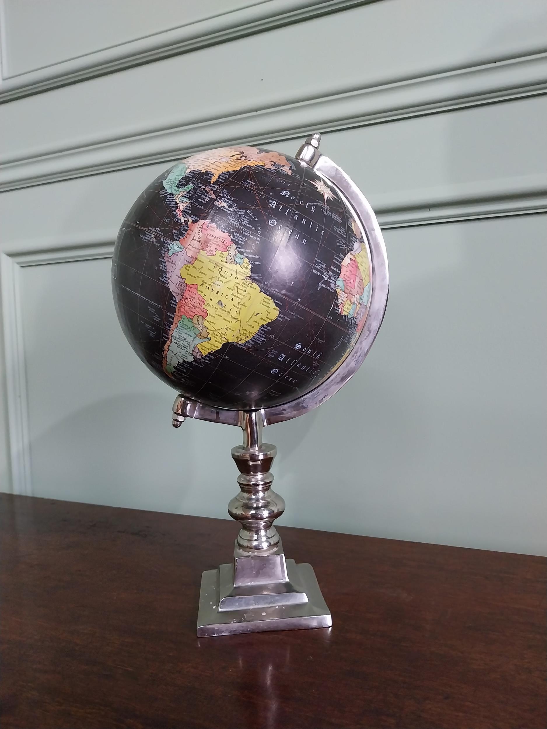 Chrome World globe {40 cm H x 22 cm Dia.}.