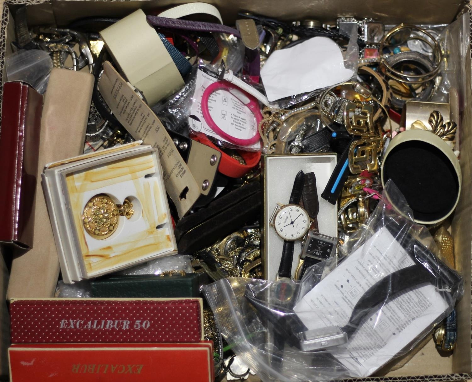 A quantity of ladies fashion quartz wristwatches and costume jewellery.