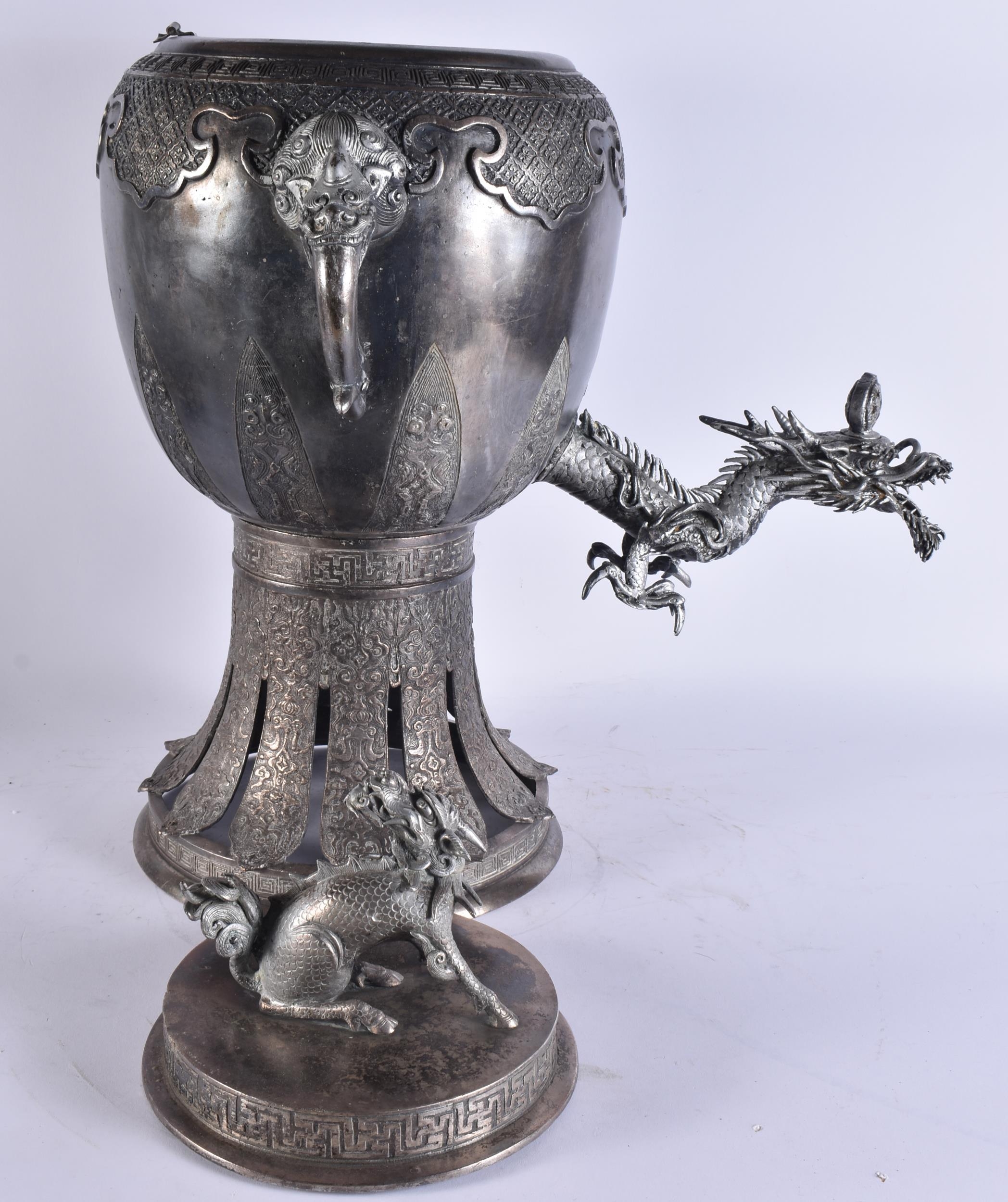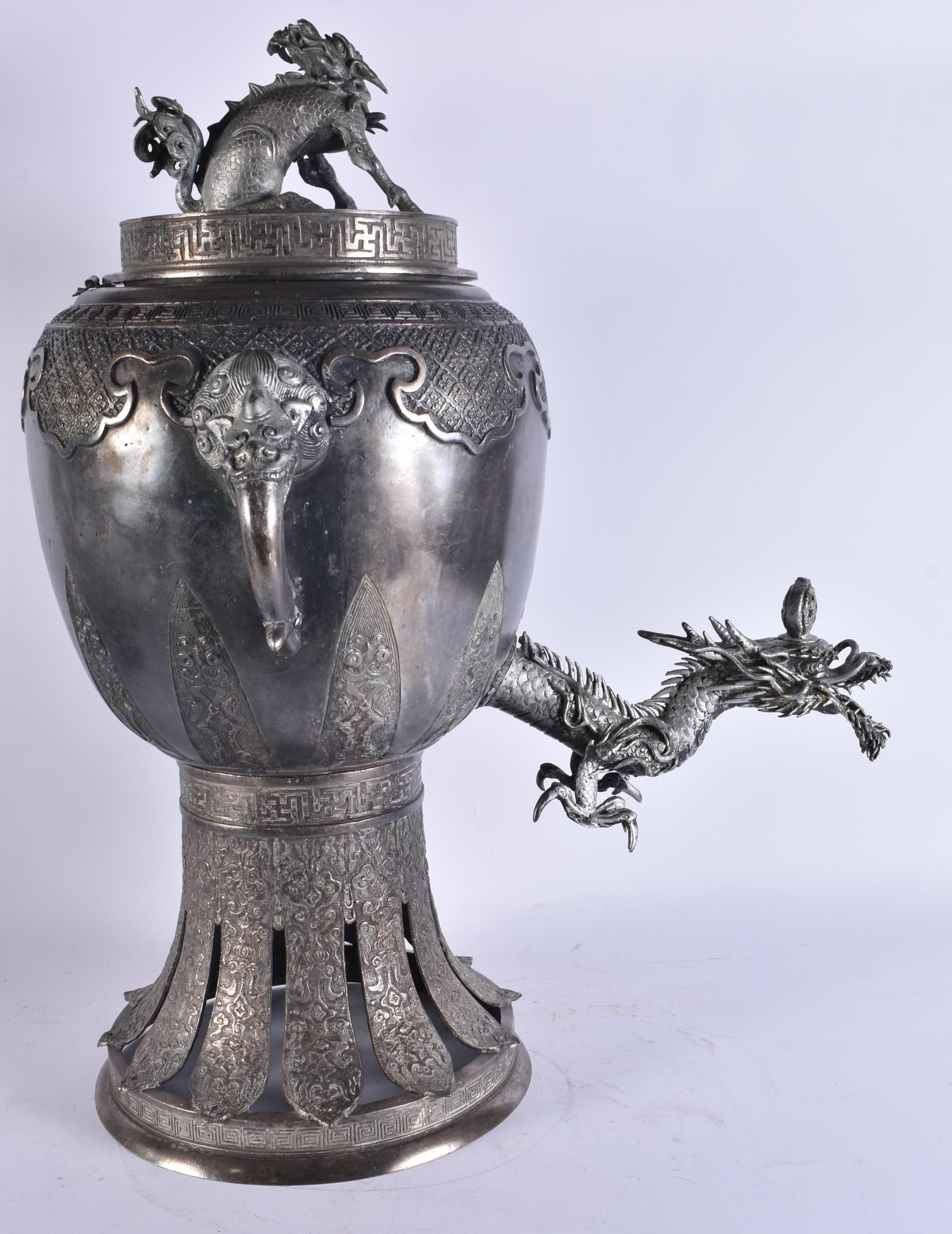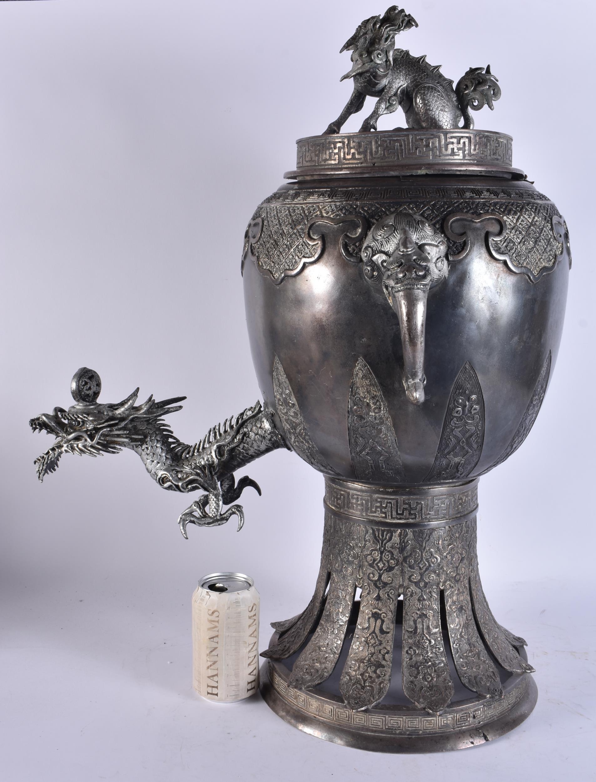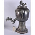 A LARGE EARLY 20TH CENTURY JAPANESE MEIJI PERIOD SILVERED BRONZE SAMOVAR. 68 cm x 24 cm.