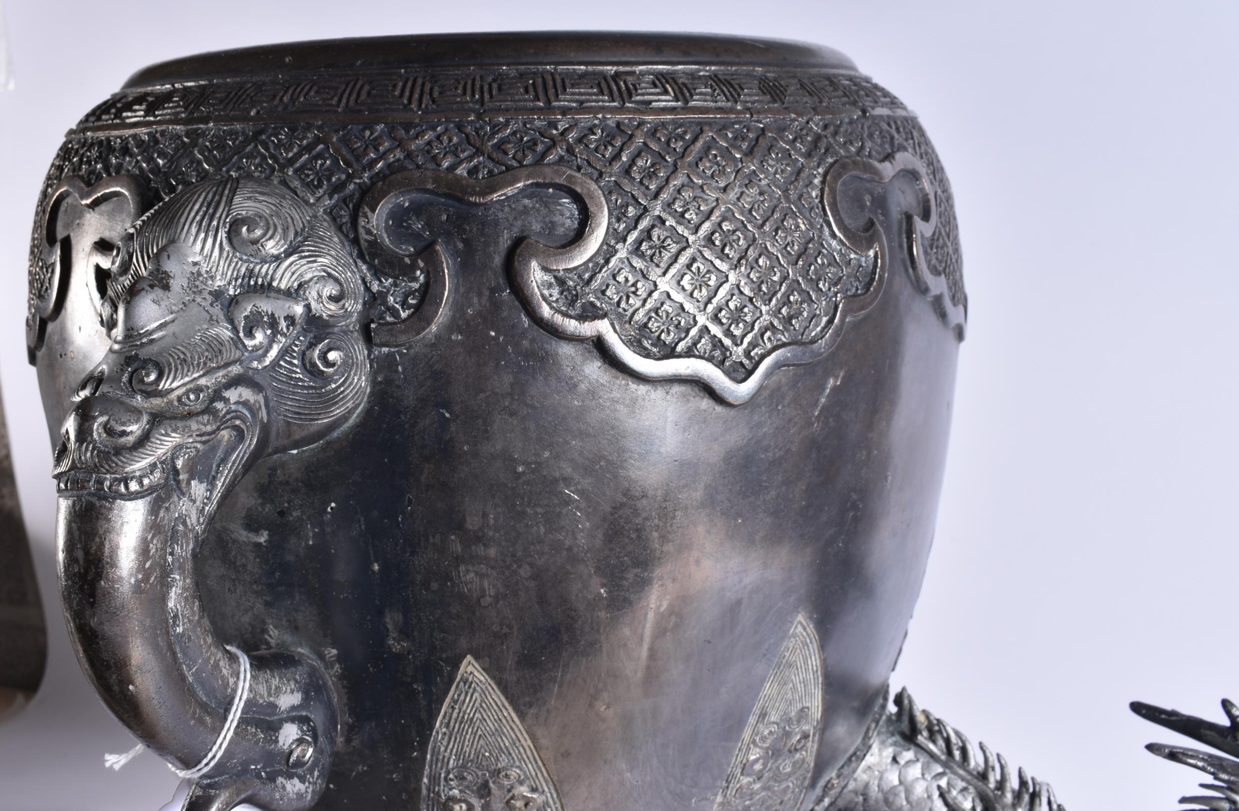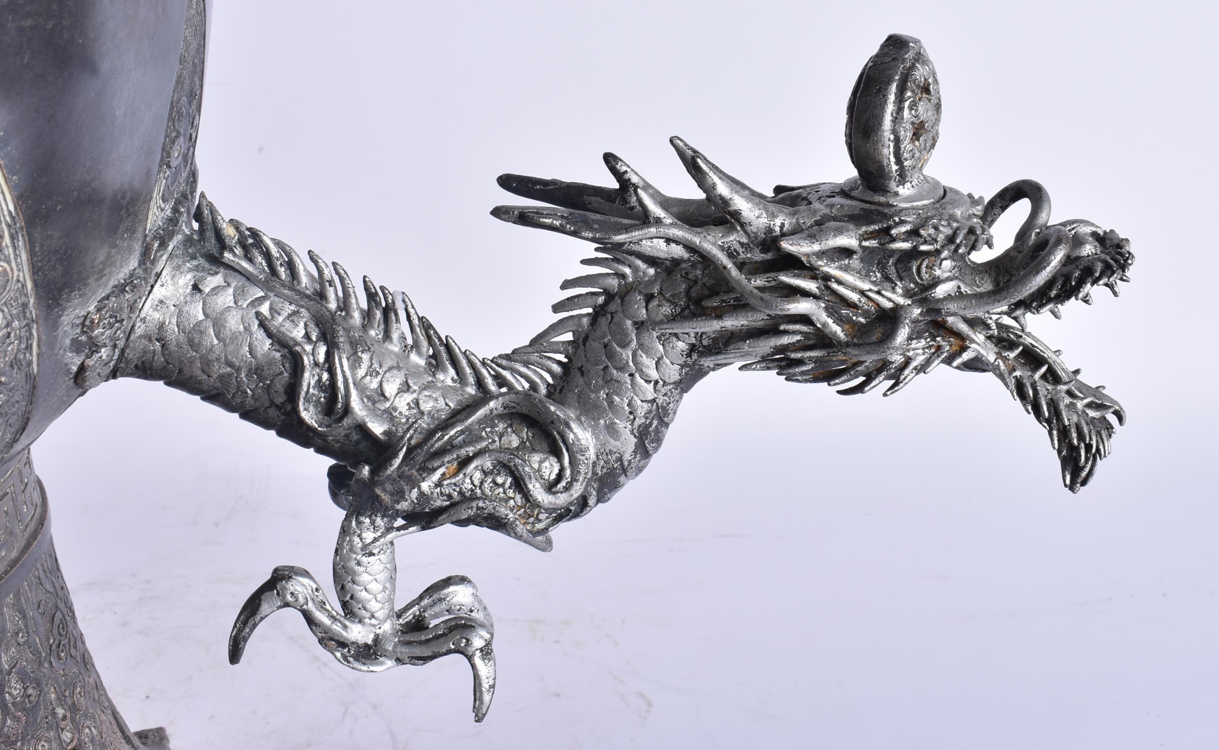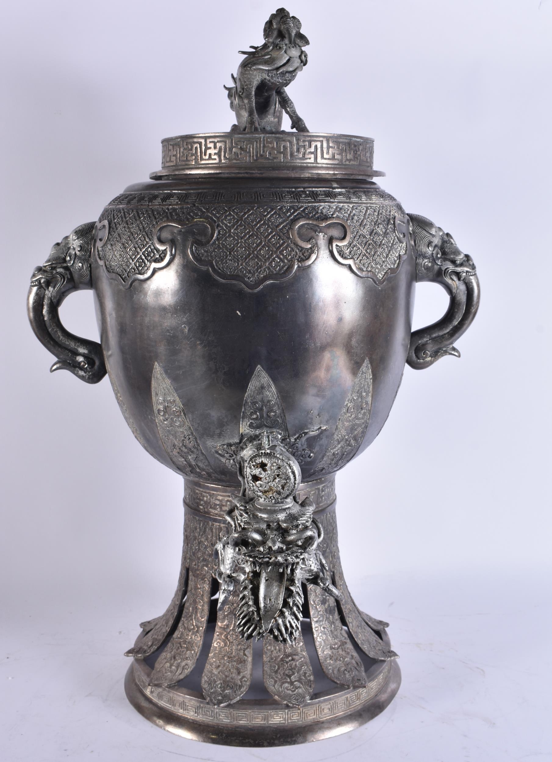 A LARGE EARLY 20TH CENTURY JAPANESE MEIJI PERIOD SILVERED BRONZE SAMOVAR. 68 cm x 24 cm.