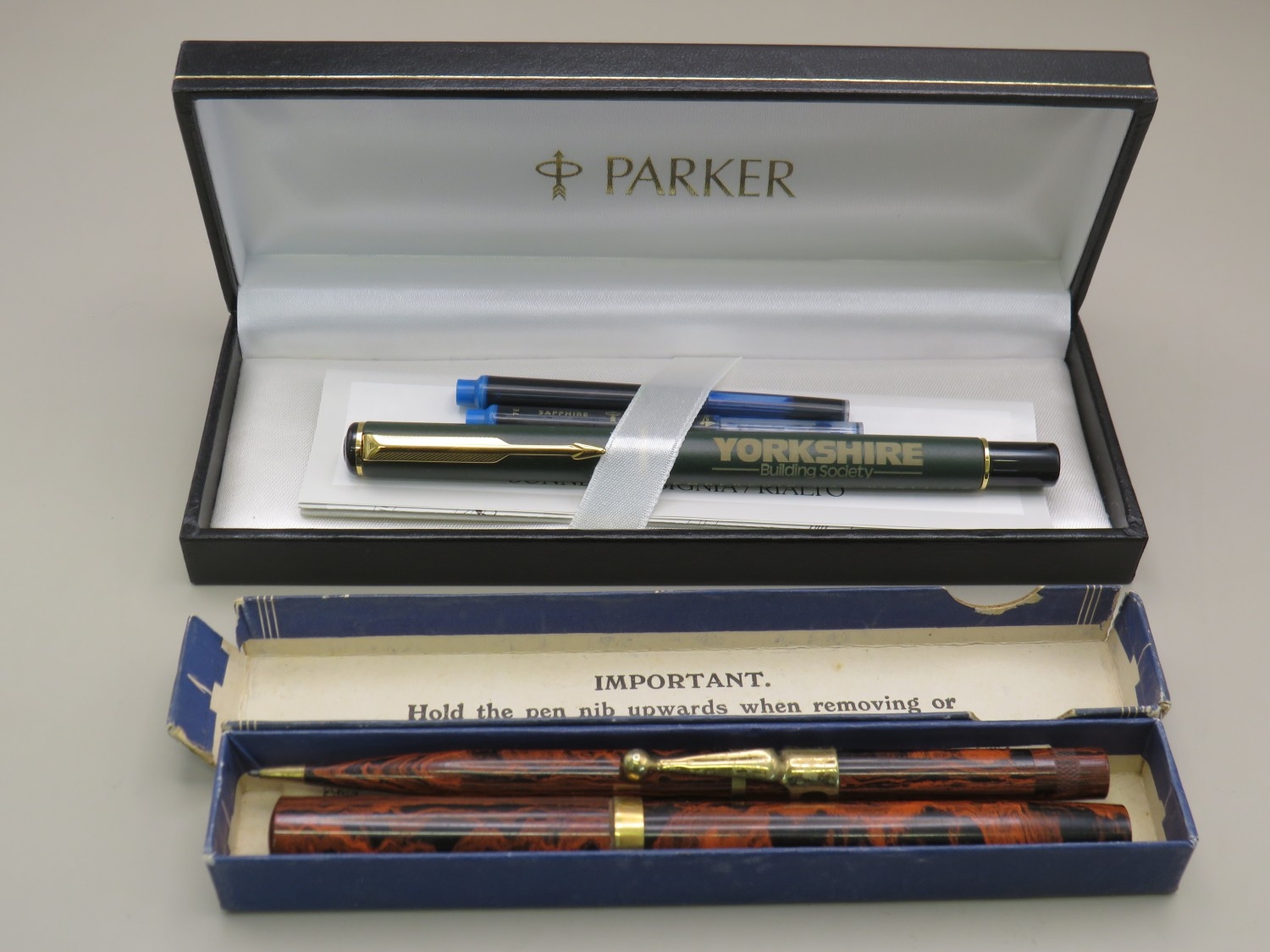 Waterman pen and pencil set and a Yorkshire Building Society Parker pen