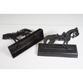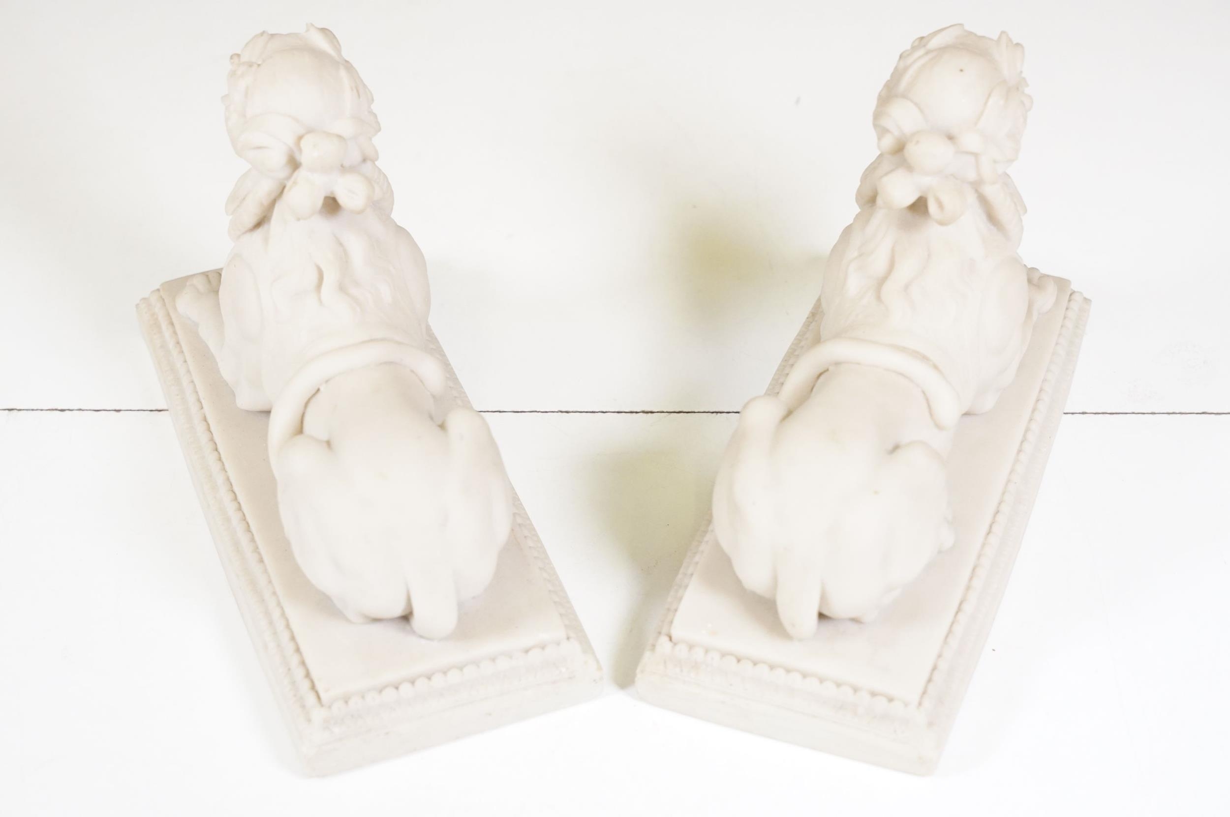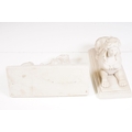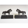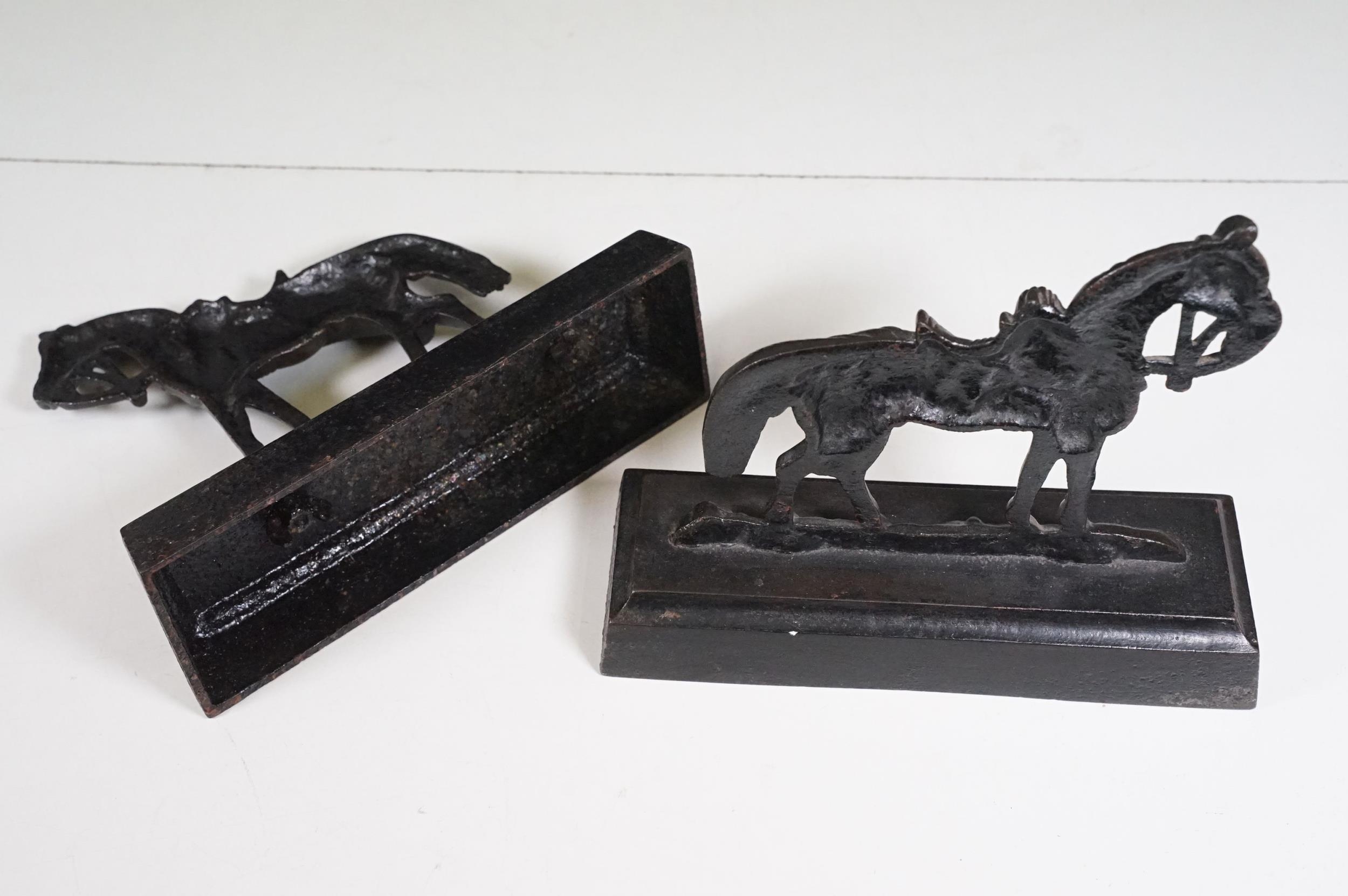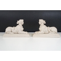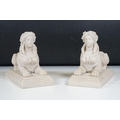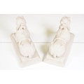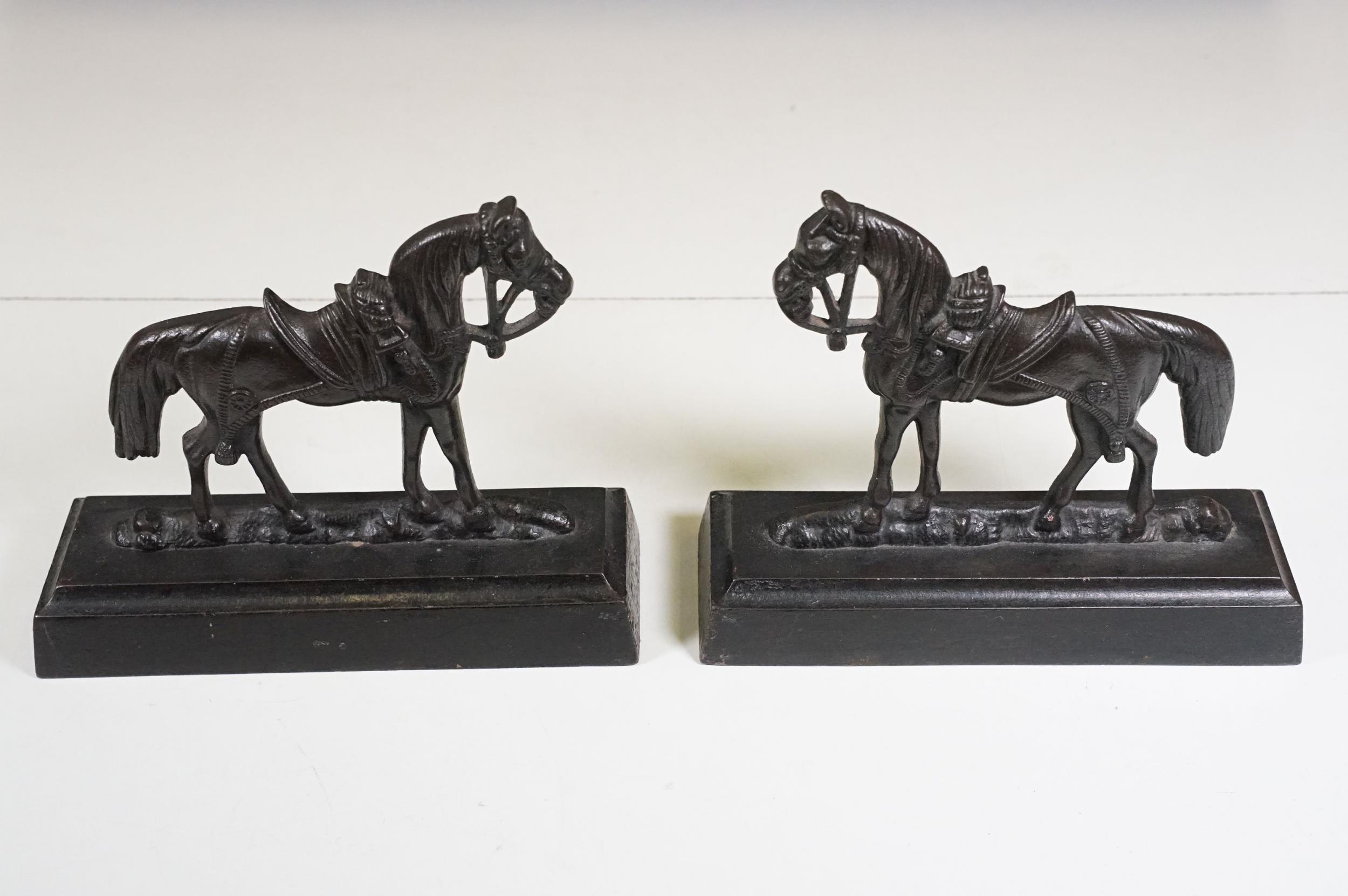 Two pairs of chimney ornaments to include pair of cast iron horse examples and pair of parian ware style sphinx with the head of a Roman / Greek woman and the body of a lion