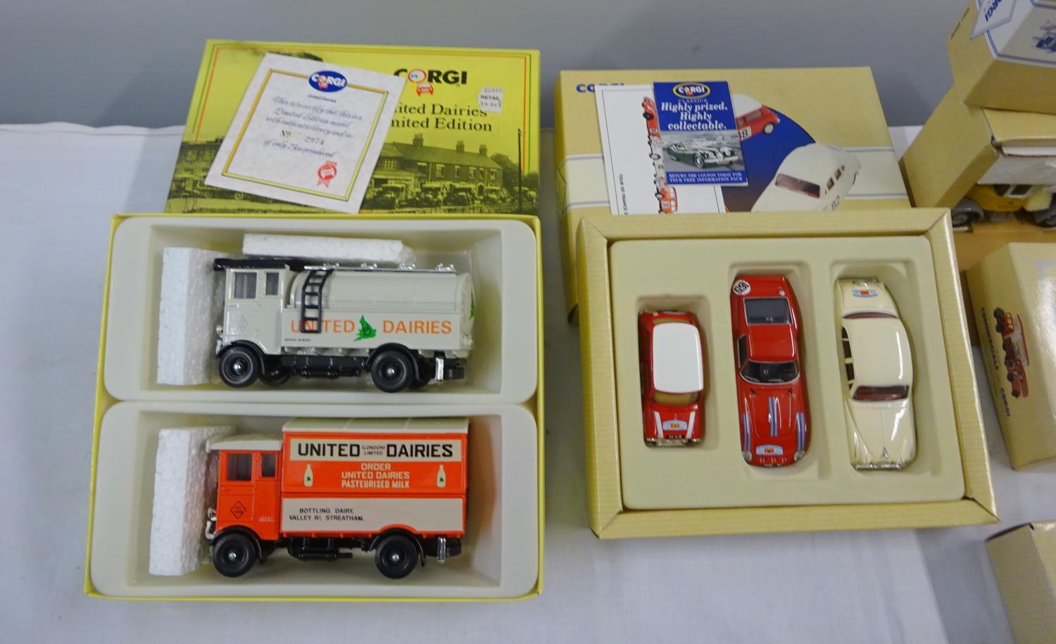 A collection of boxed Corgi vehicles to include Tour De France set, United Dairies etc (7).