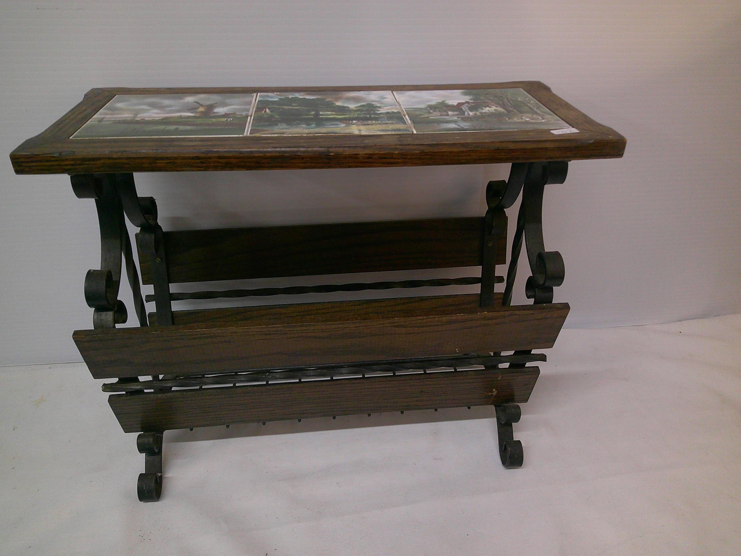 Oak tiled top magazine rack