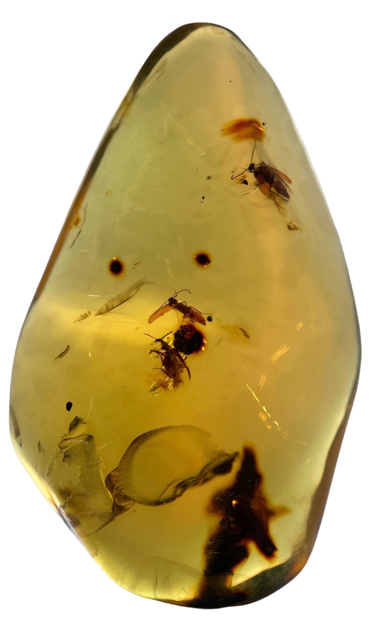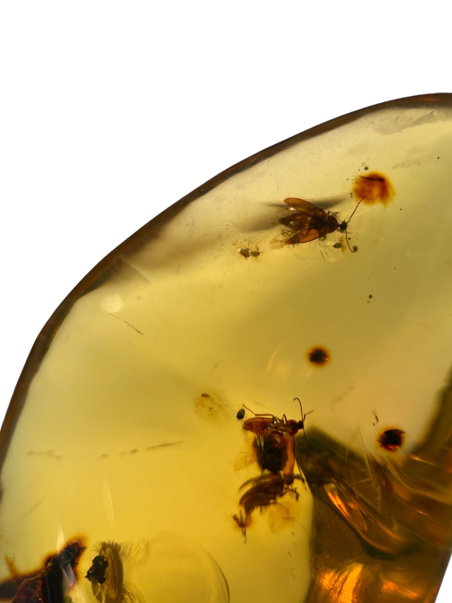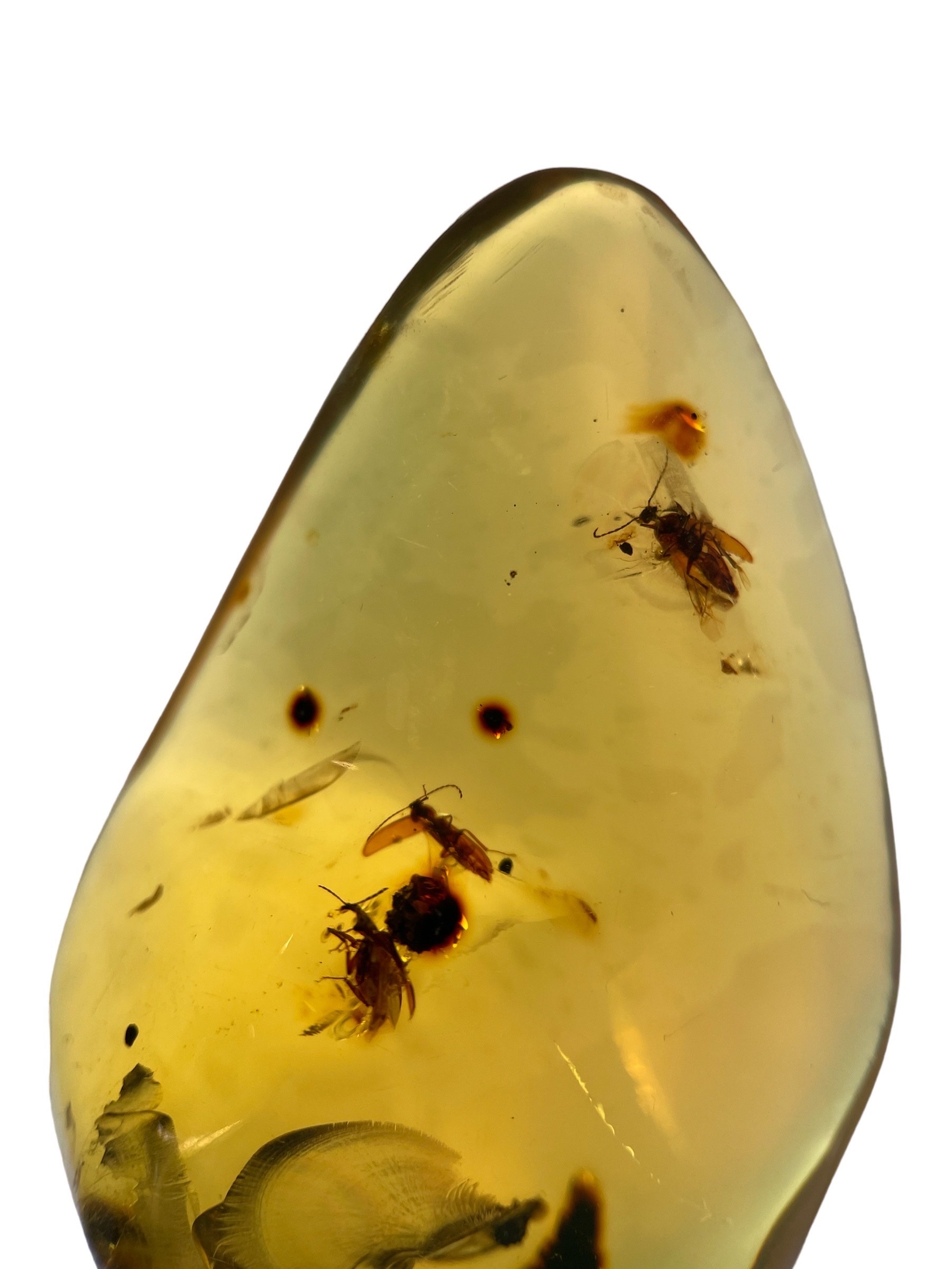 A LARGE AMBER GEM WITH MULTIPLE INSECT FOSSILS