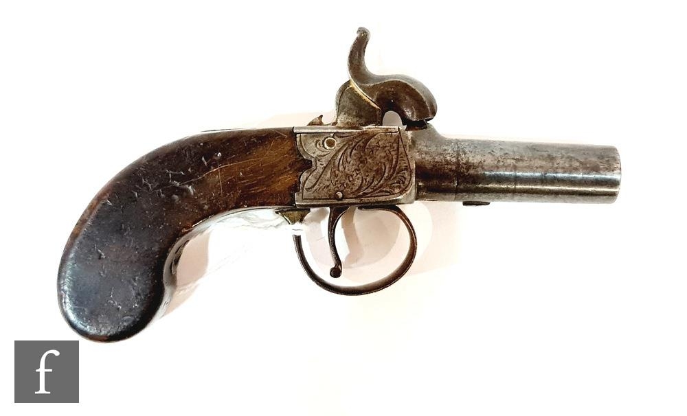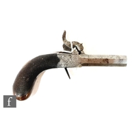 A small 19th Century percussion muff pistol by Smith London, barrel 4cm, engraved action, plain butt.