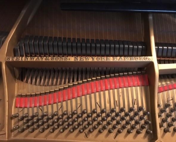 Steinway (c1936) A 5ft 7in Model M grand piano in an ebonised case on square tapered legs; together with a matching stool.