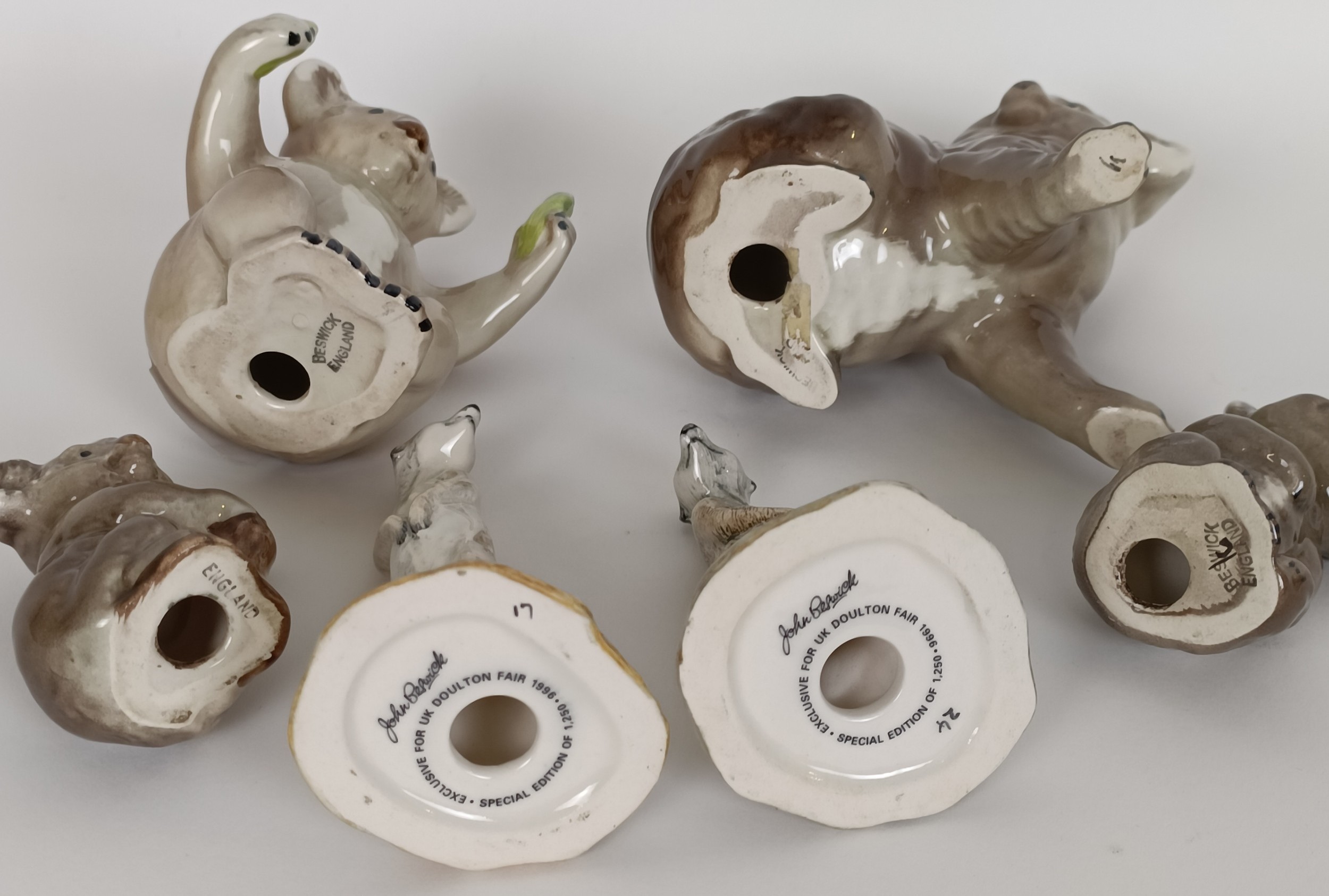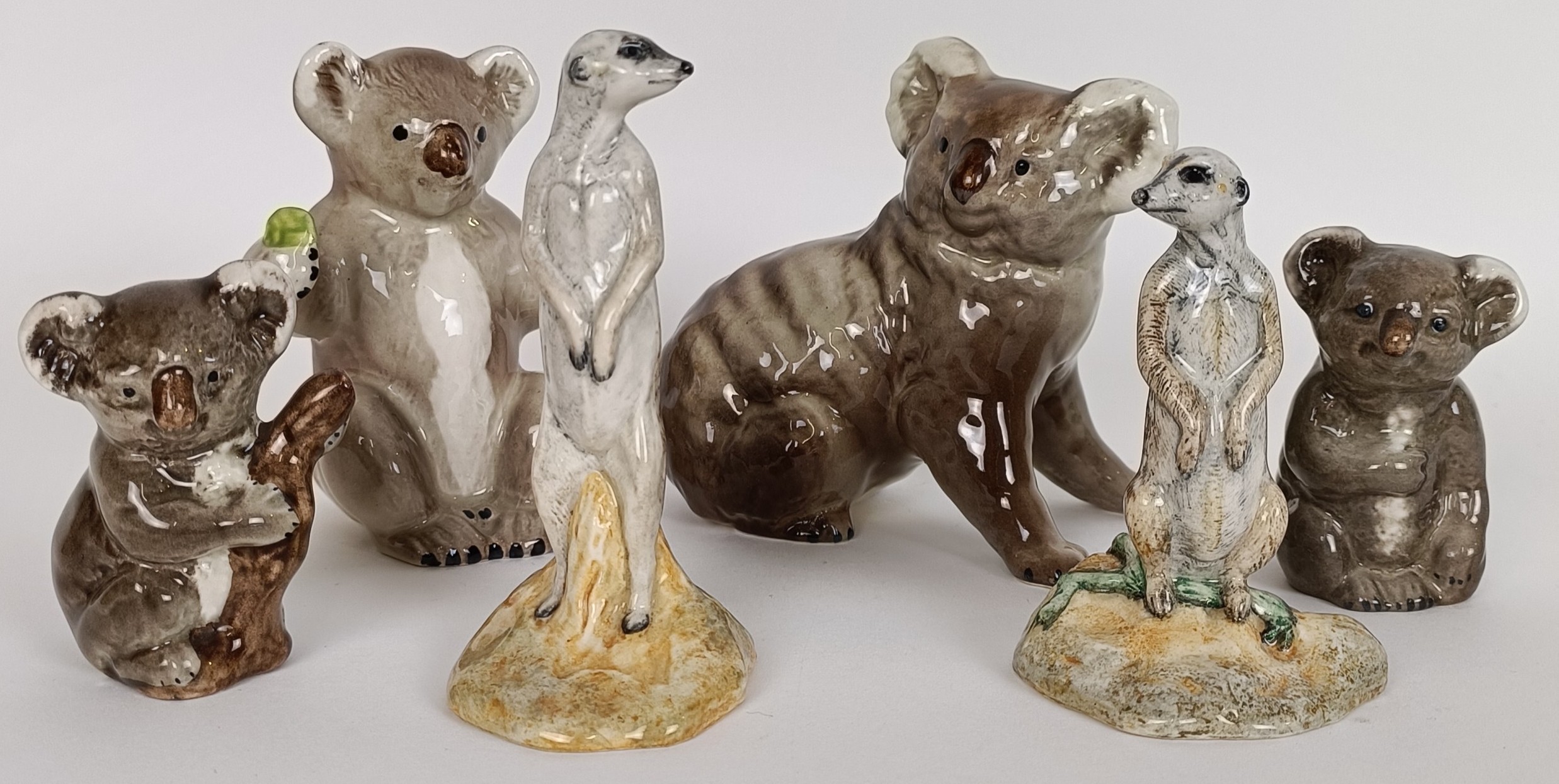 A Beswick Koala Bear, 1038, three others, 1039, 1040 and 1089, and two Meerkats, 3568 and 3571, all gloss (6)