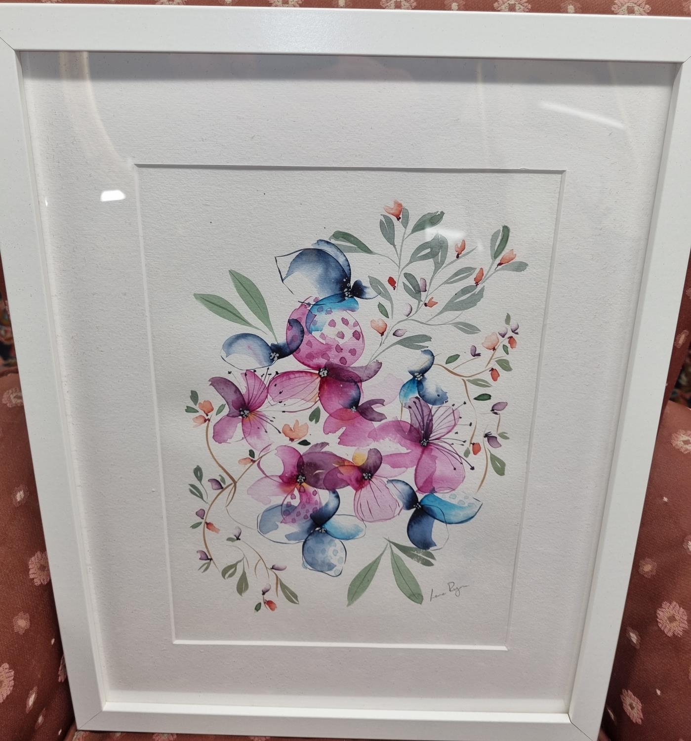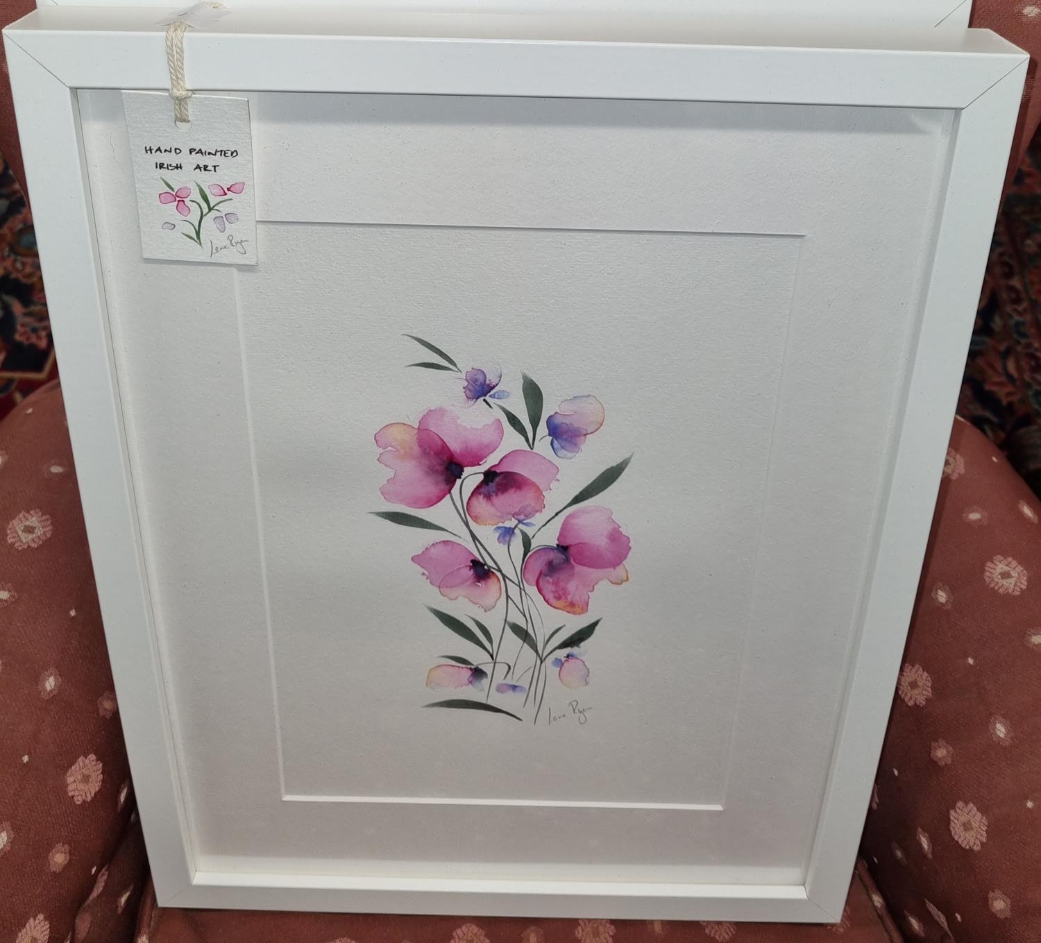 Lena Ryan, 20th Century Irish. A pair of Watercolours, Still life of Flowers, signed. Lena Ryan grew up in Tullamore and started painting at the age of 16, and has a degree from Dun Laoghaire Art and Design. Her inspiration comes from nature and loves to paint abstract florals with a focus on natural forms, colours and patterns. 30 x 20cm approx.