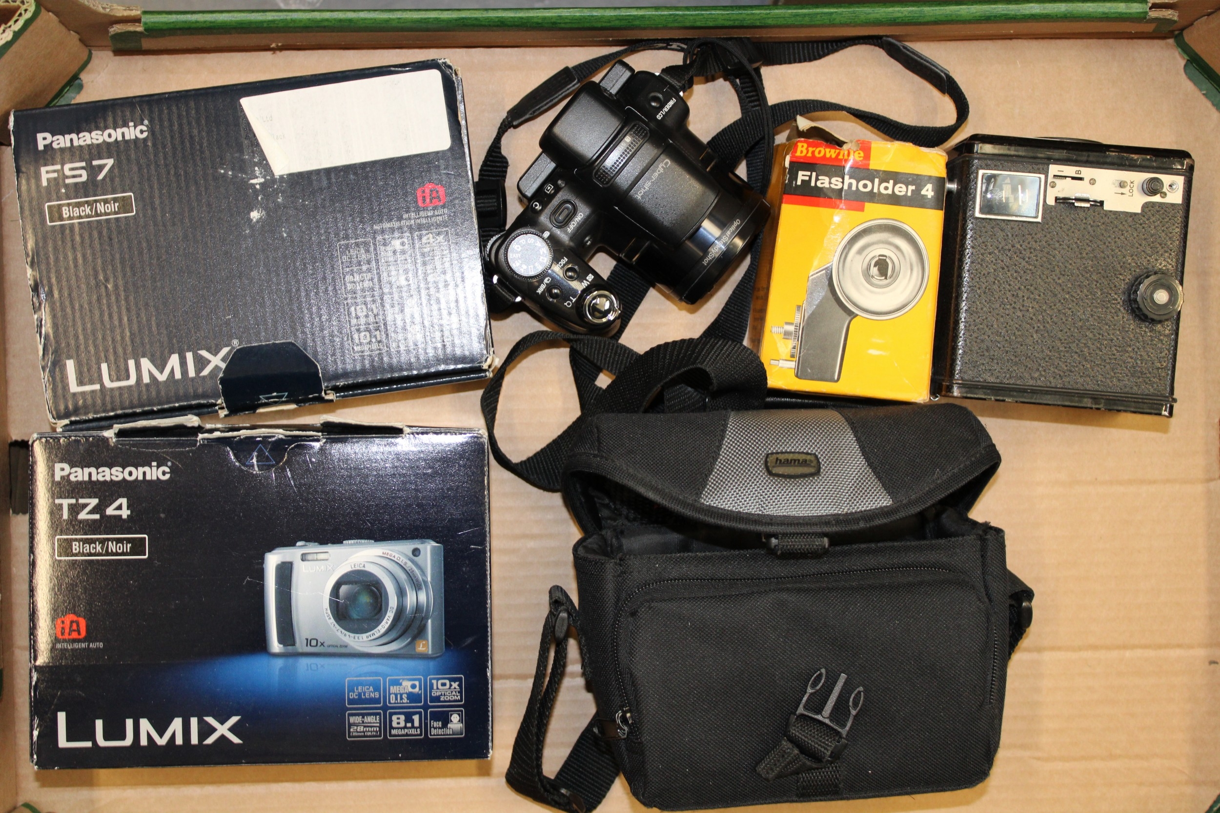 A collection of cameras to include a Panasonic FS7 Lumix, Panasonic TZ 4 a Sony Cyber-shot and other similar items, (Qty).