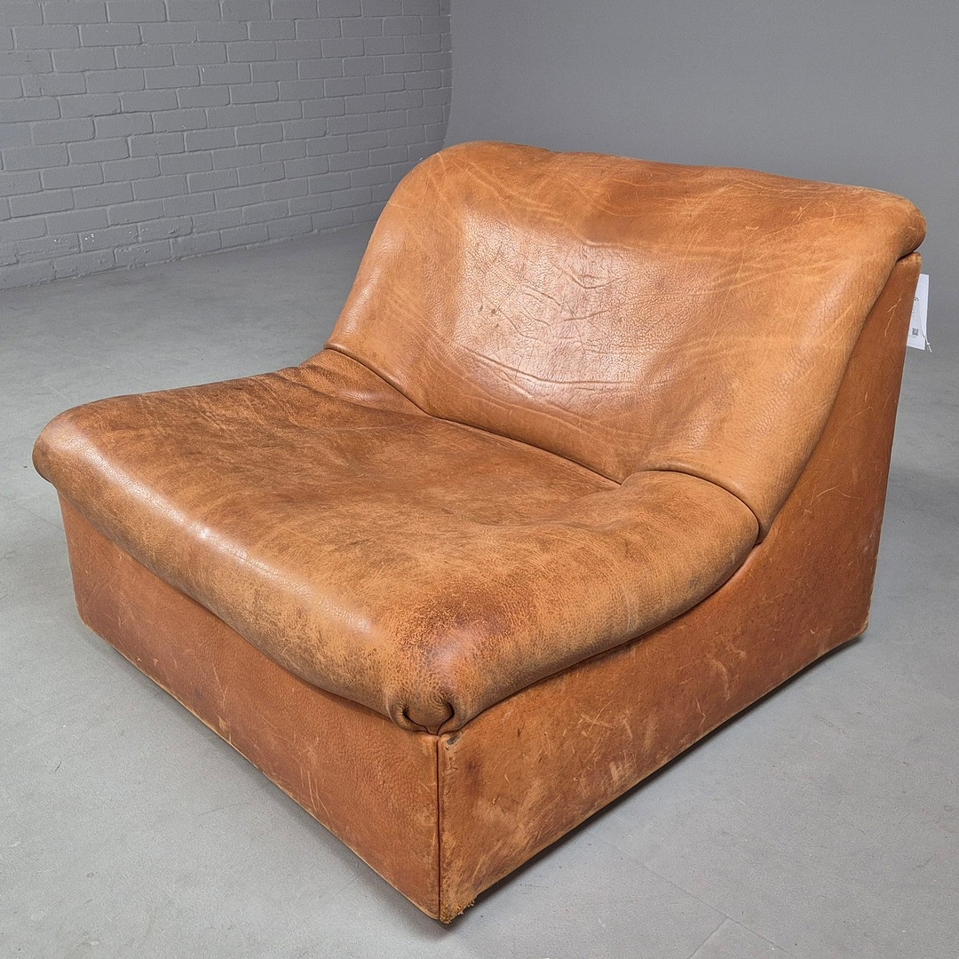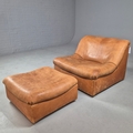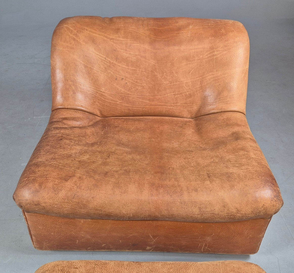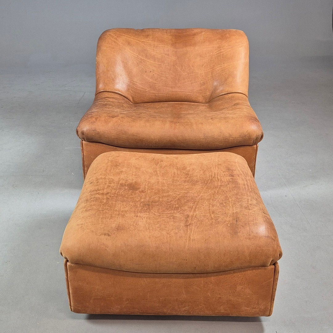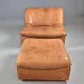 ATTRIBUTED TO DE SEDE DS46 CHAIR AND STOOL. 92cm W approx. (2).