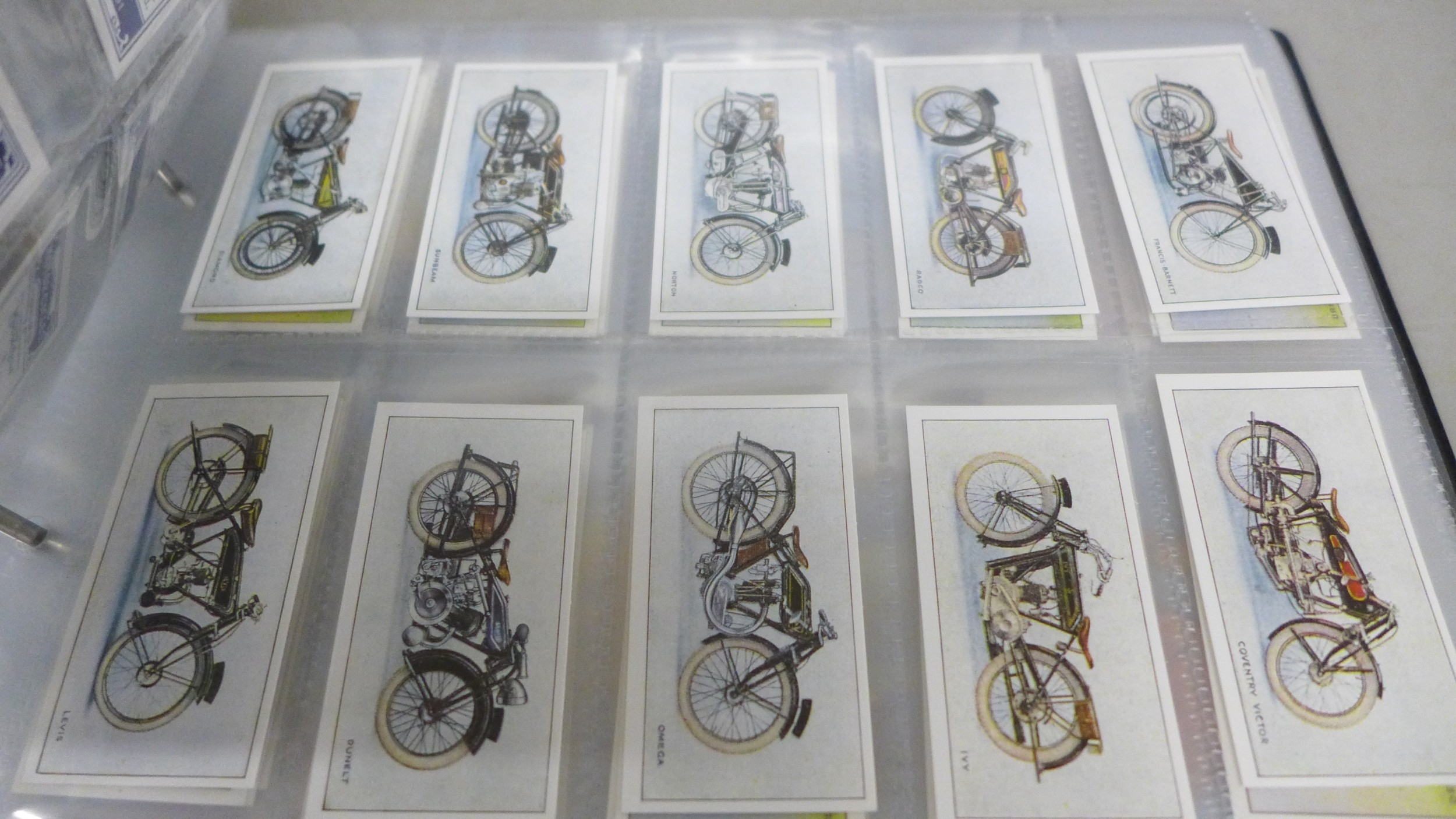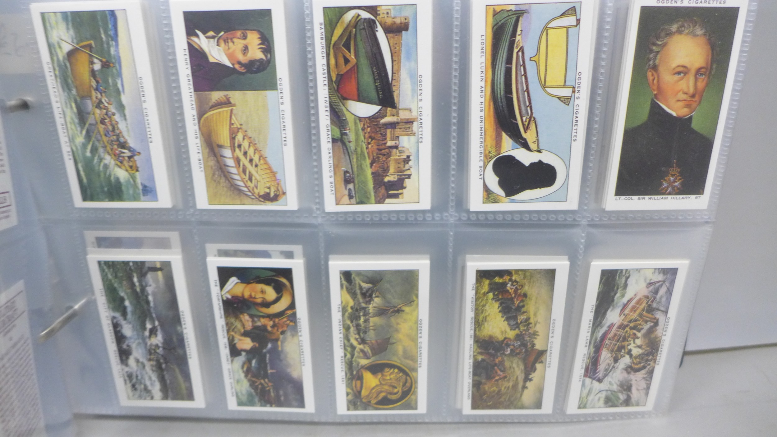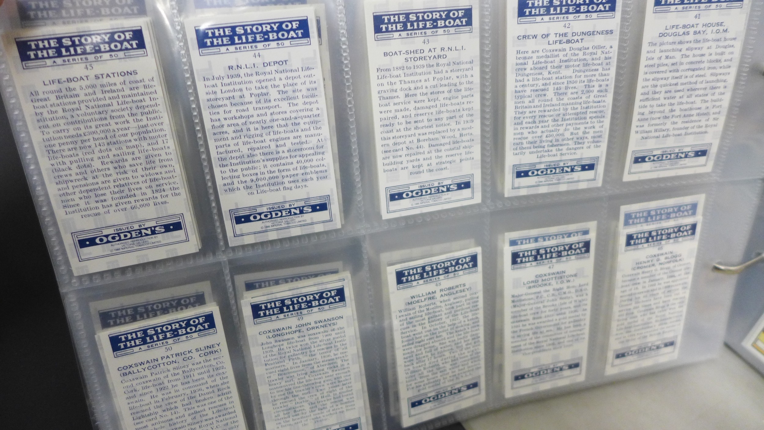 A collection of forty-five complete reproductions of early 1900s cigarette card sets in two albums and some individual sealed County Cricket sets, totalling over 1300 cards, brands include, Myrtle Grove, Ogden's, Bradford's Boston, Taddy & Co., etc., covering many themes