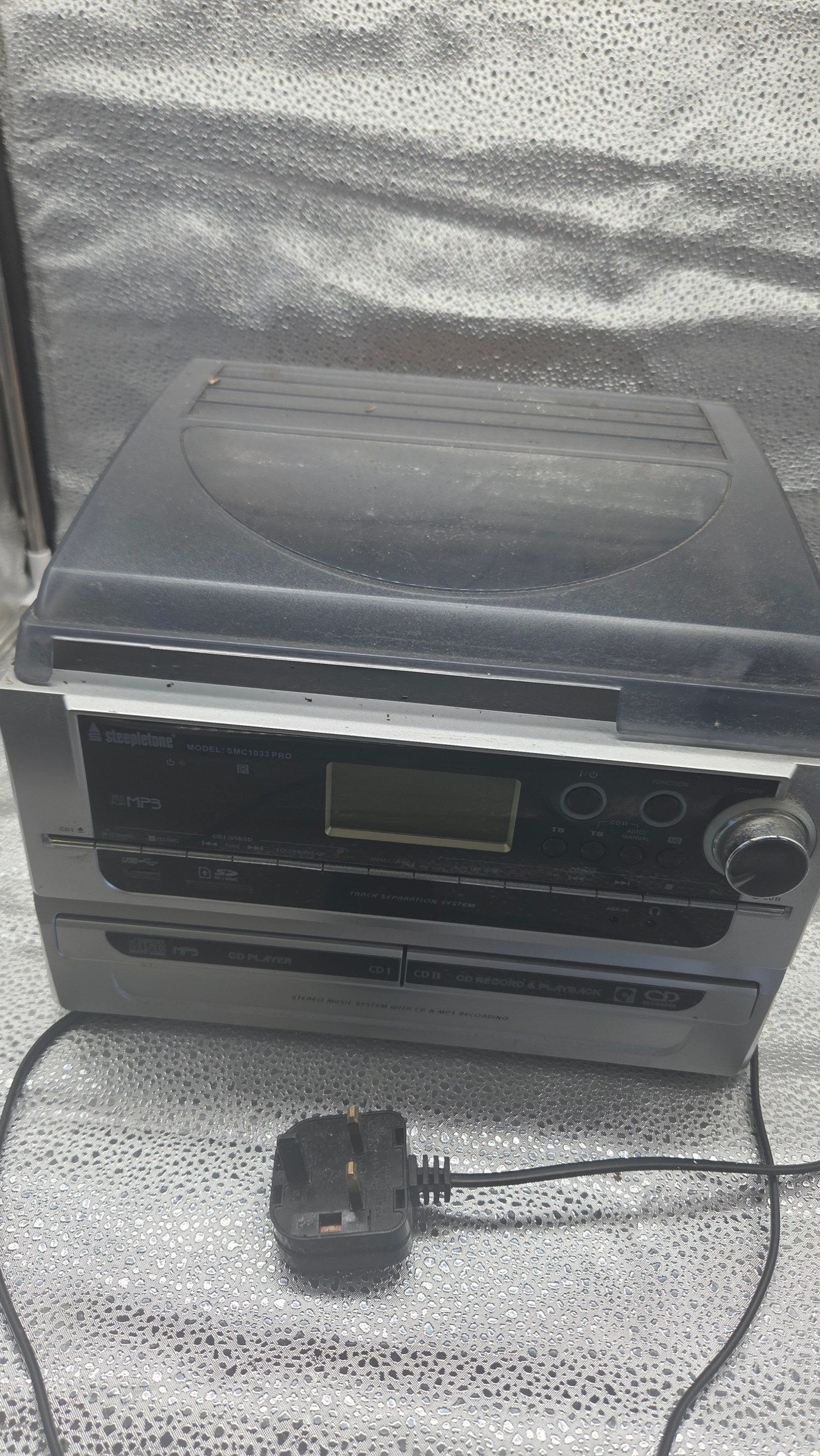 Steepletone SMC1033 PRO Stereo Music System with Turntable and Dual CD Player powers on