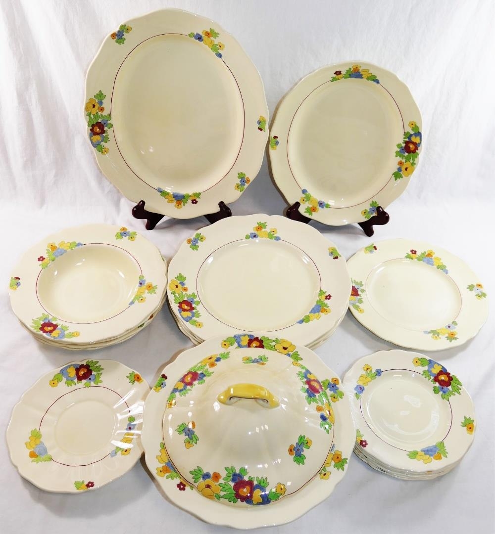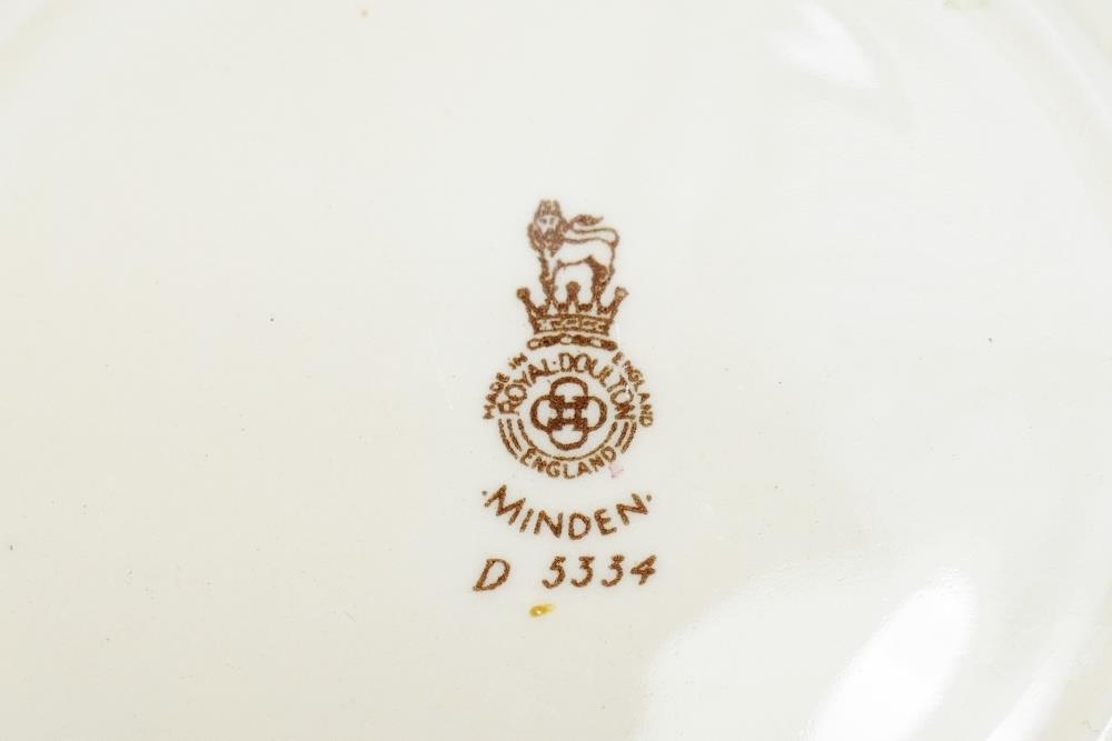A mid 20th century Royal Doulton 'Minden' pattern part dinner service numbered D5334, comprised of 20 pieces including a lidded tureen and two oval graduated serving plates