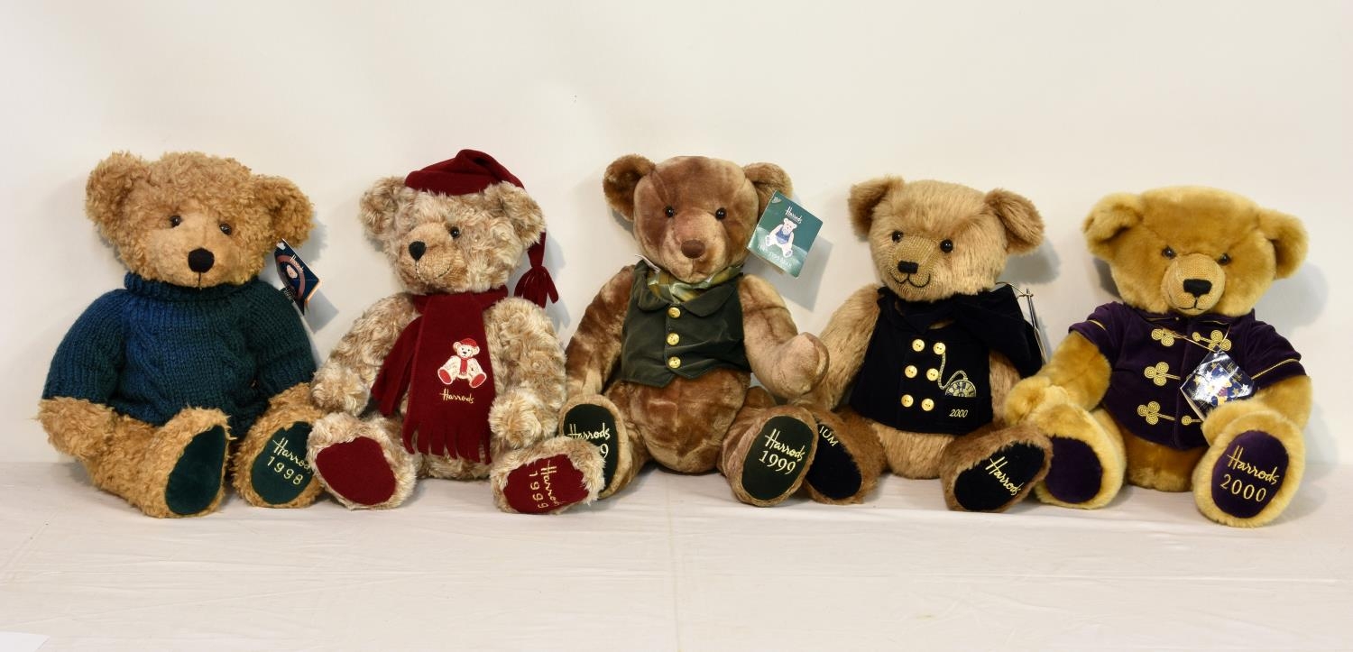 Five Harrods Teddy Bears, comprising of 1998; 1999; 1849-1999; 2000; 2000 Millennium. (5)