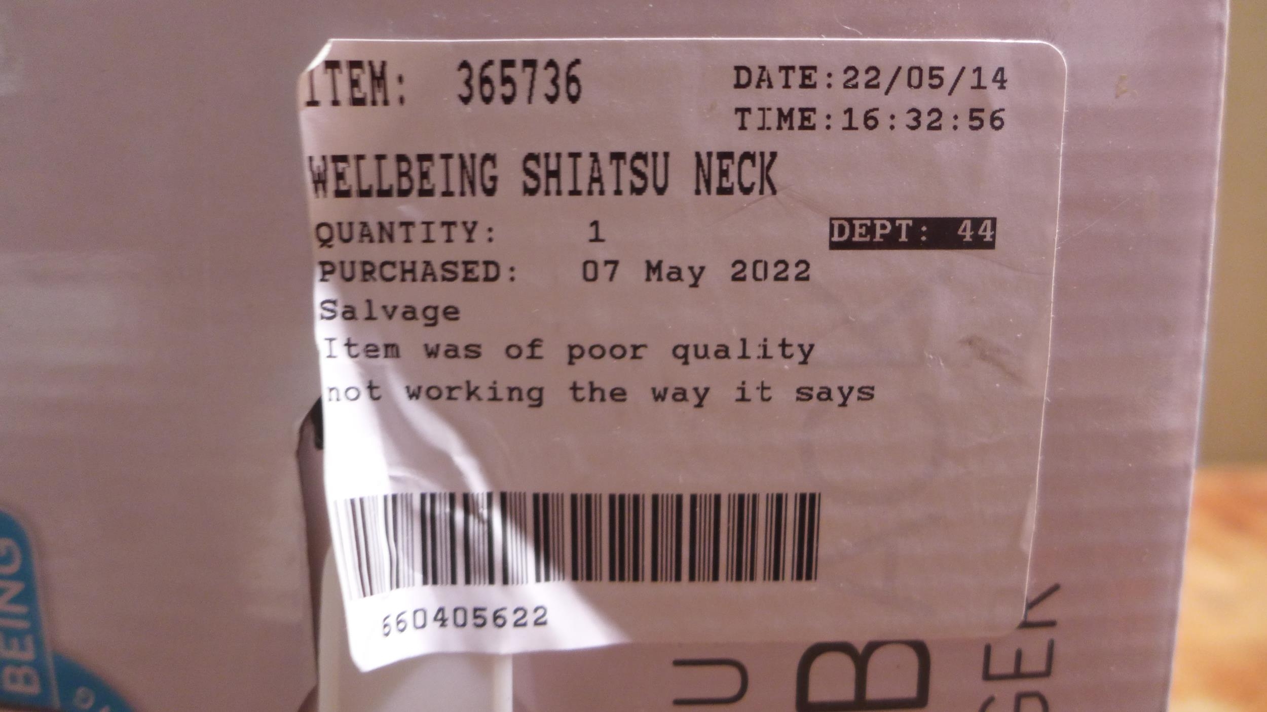 Wellbeing Shiatsu Neck Massager (254-612) * This lot is subject to vat