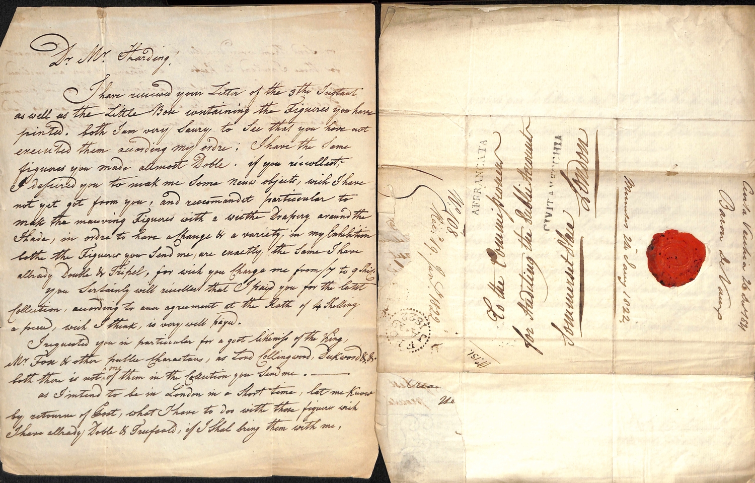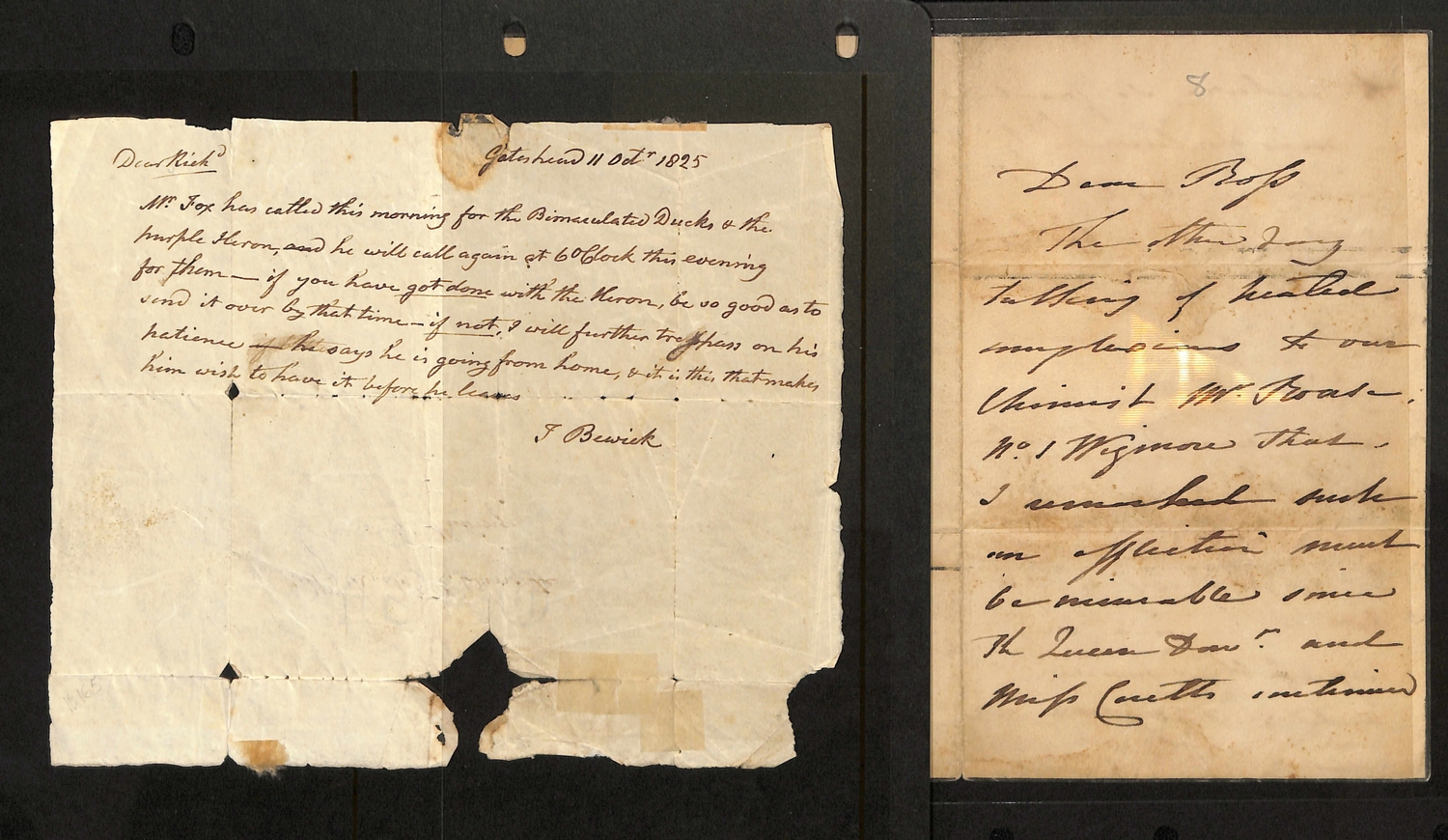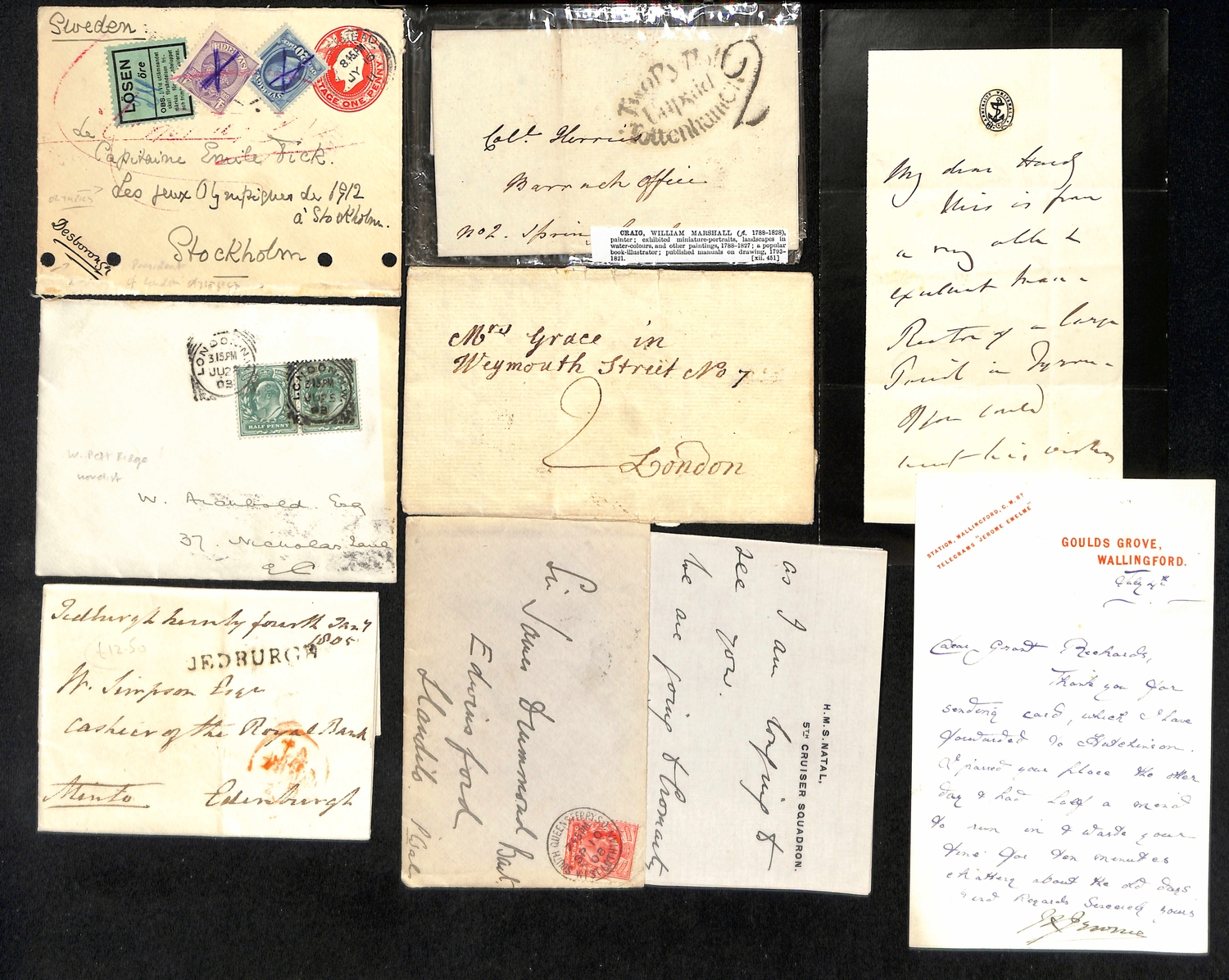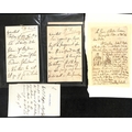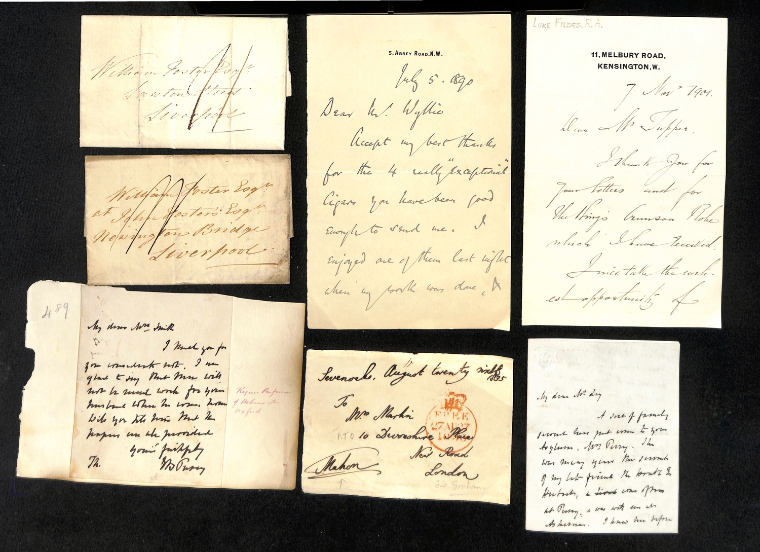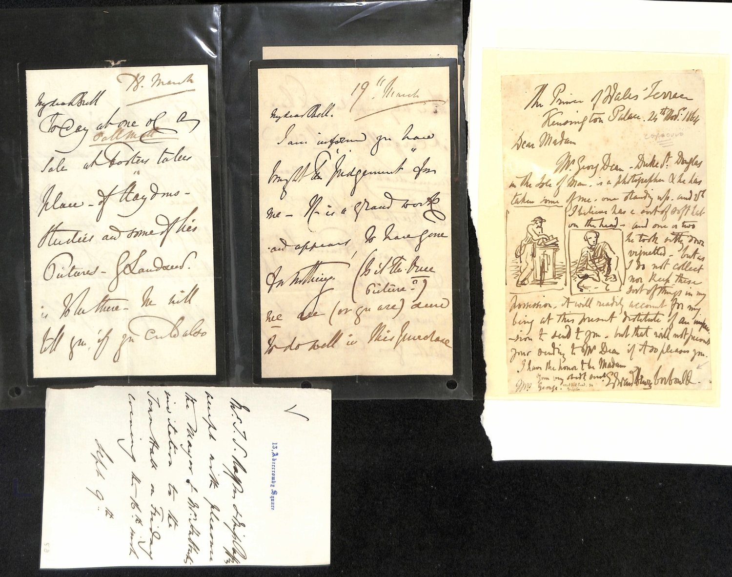 c.1800-1911 Letters, etc., with autographs, mainly artists or authors, including 1825 letter written and signed by the wood engraver Thomas Bewick from Gateshead, to fellow engraver Richard Wingate discussing engravings of birds (folded, faults but a scarce signature); 1848 letter from the artist Alfred Edward Chalon; undated letter from Jerome K. Jerome, author of "Three Men in a Boat"; 1864 letter from the artist Edward Henry Corbould regretting he has no Photo of himself to give as requested, including sketches of two photos taken of him which may be had from a Douglas photographer; two undated letters from the artist Edwin Landseer concerning the purchase of the painting "The Judgement of Solomon" from Haydons Studies at the auction held by Fosters of Pall Mall, etc. (23).