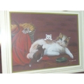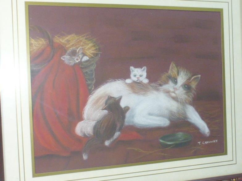 Framed and Glazed watercolour depicting cats by T Conway