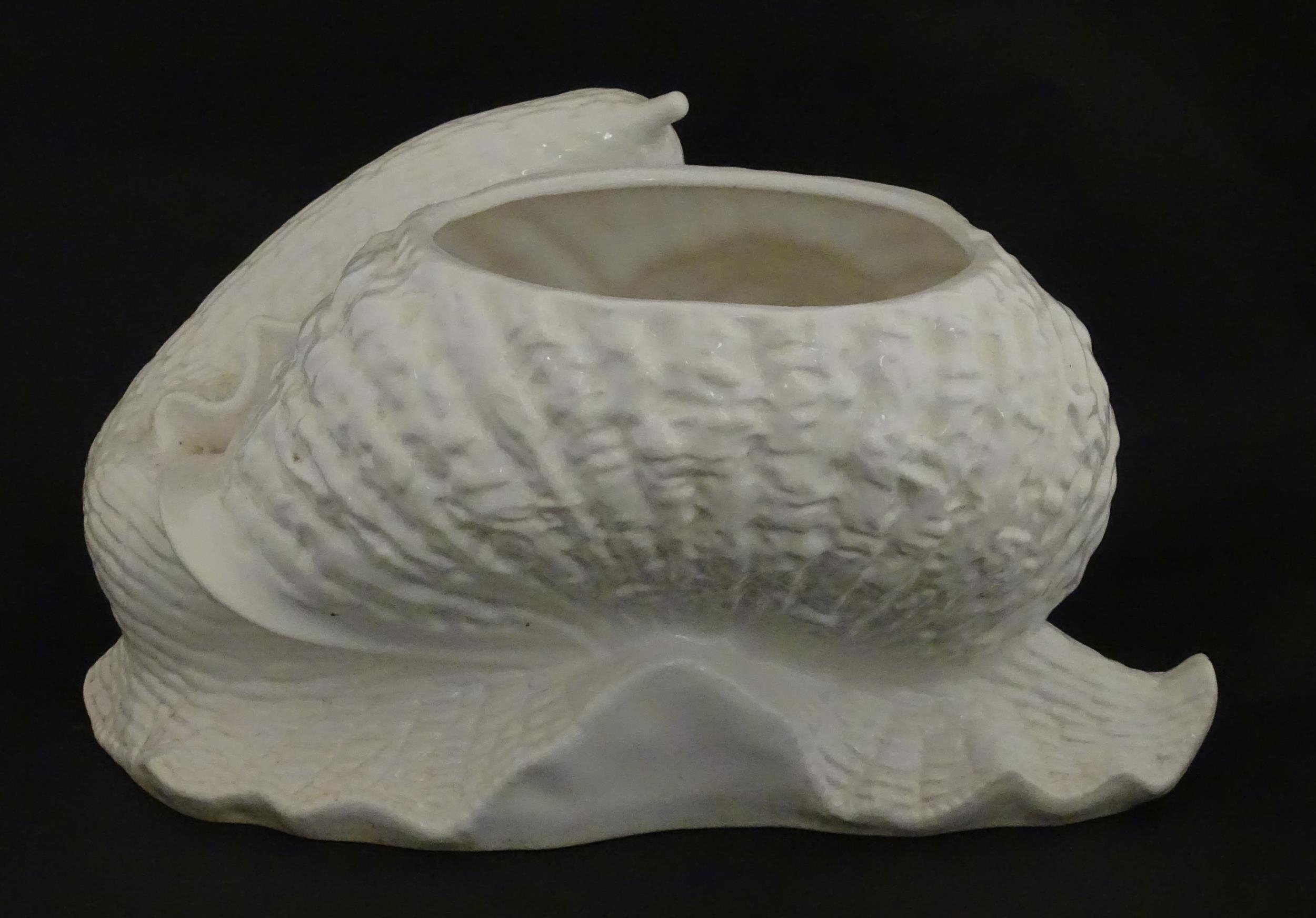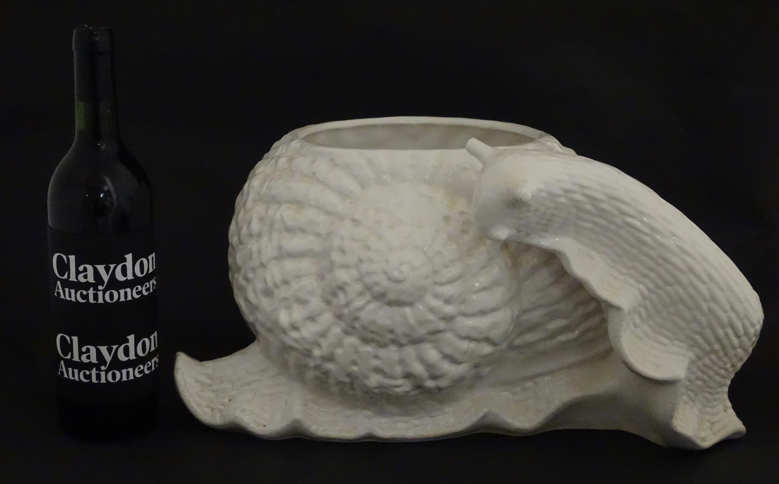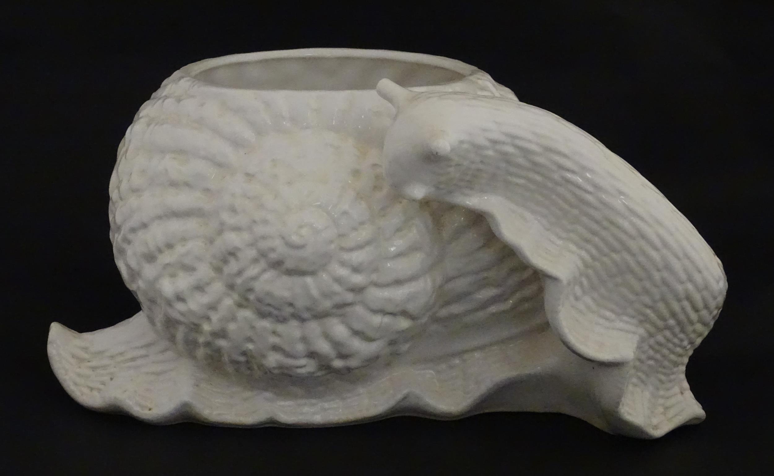 A Spanish novelty ceramic planter of snail form. Marked Hispania under. Approx. 9" high