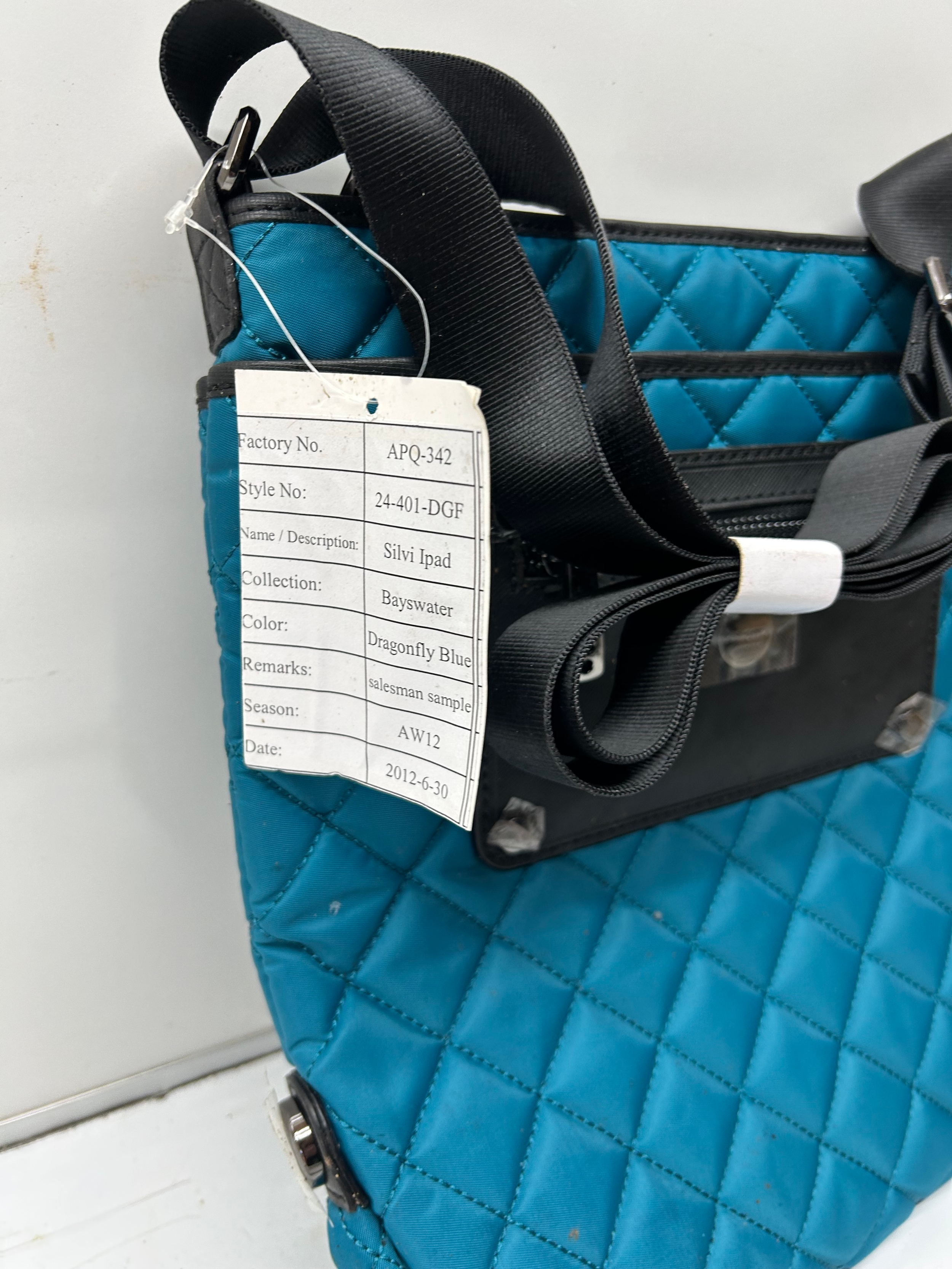 Knomo Quilted Crossbody / Shoulder Bag – Dragonfly Blue – “Silvi iPad” Bayswater Collection