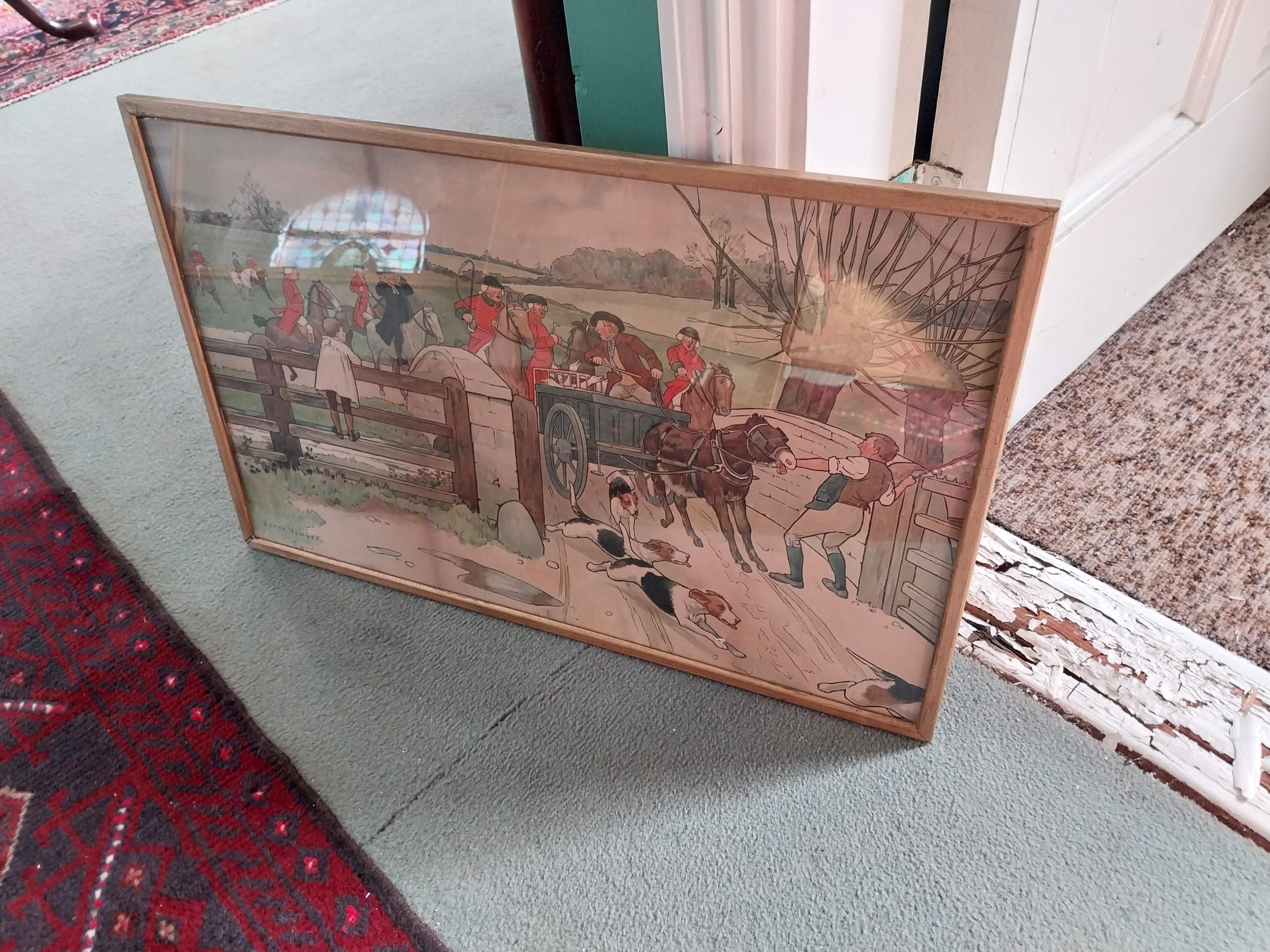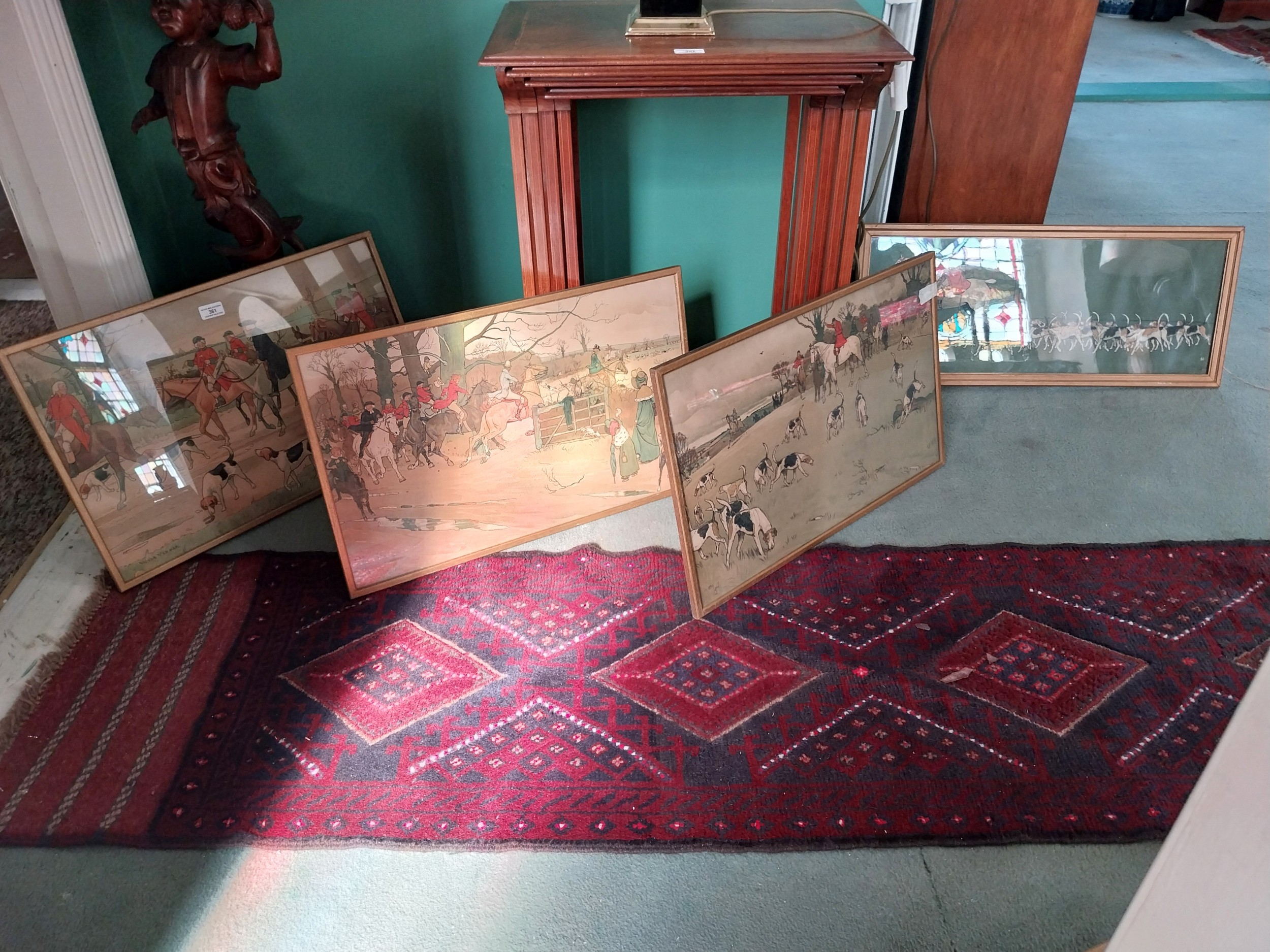 Five early 20th. C. coloured Hunting prints, mounted in gilt frames. {Each 39cm H X 63cm W }.