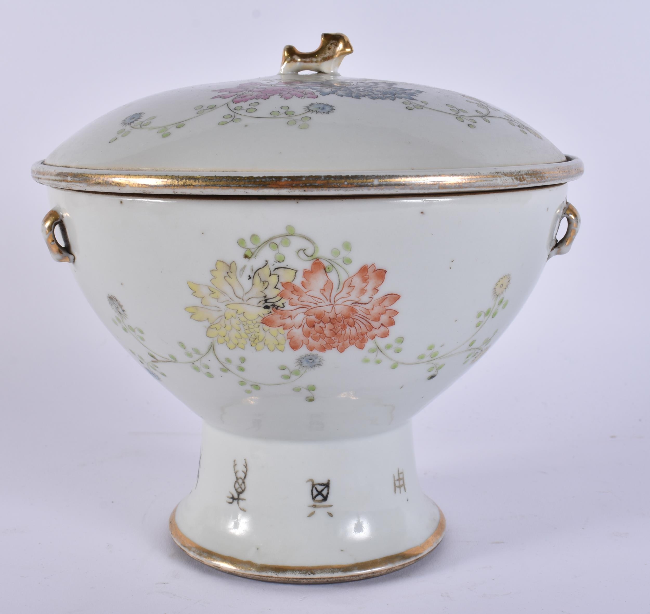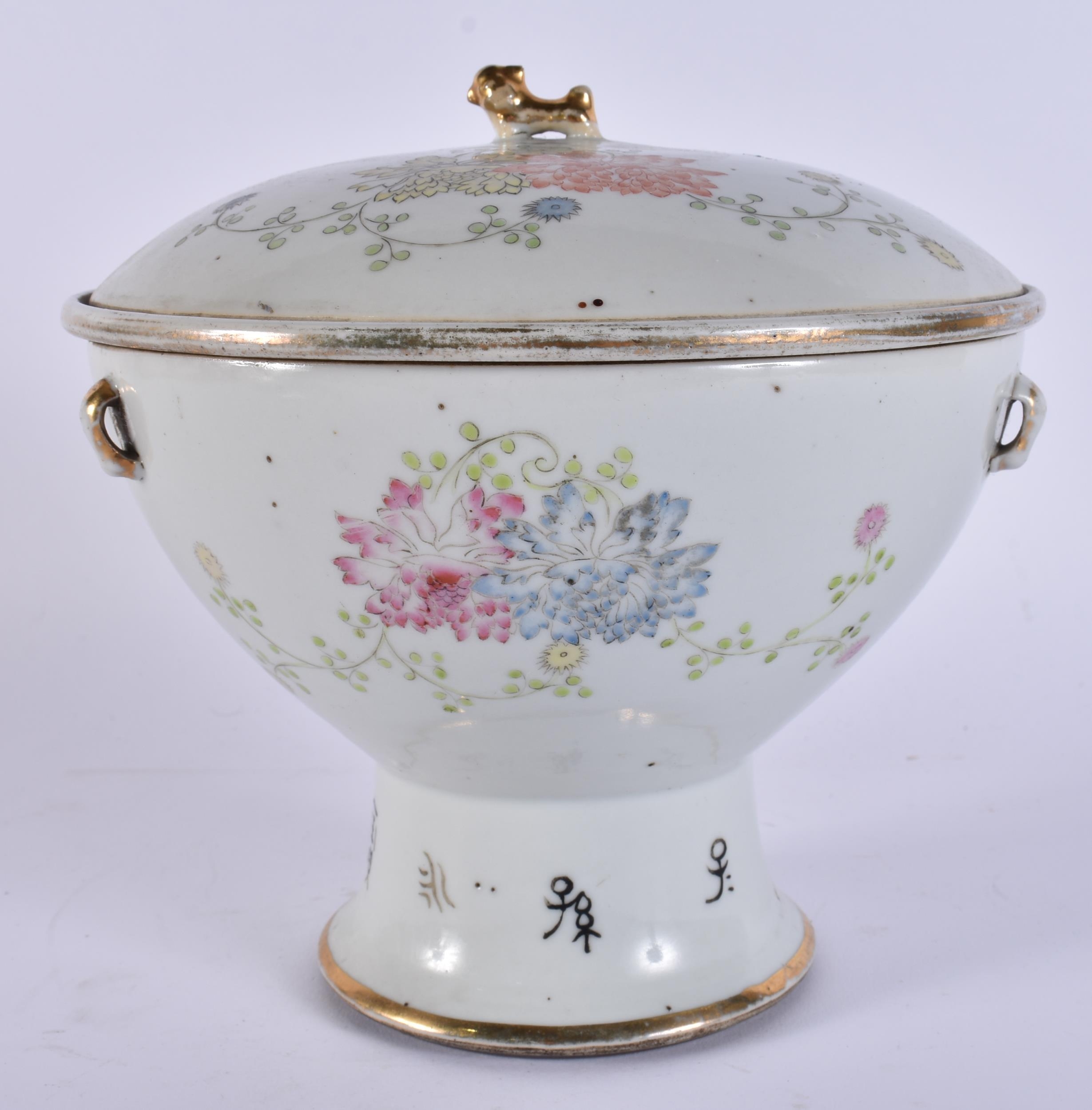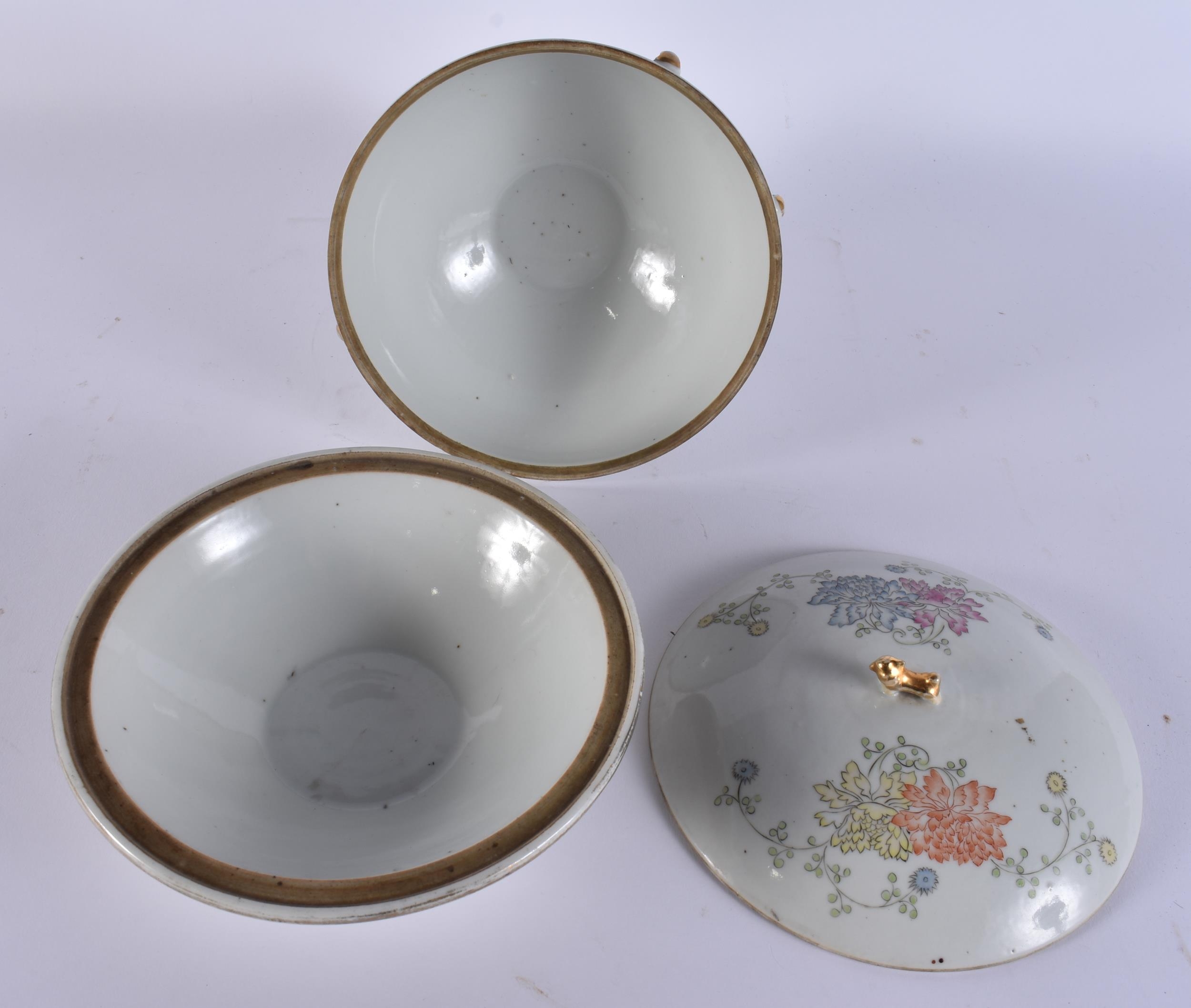 AN EARLY 20TH CENTURY CHINESE FAMILLE ROSE PORCELAIN KAMCHENG BOWL AND COVER painted with flowers. 20 cm x 15 cm.