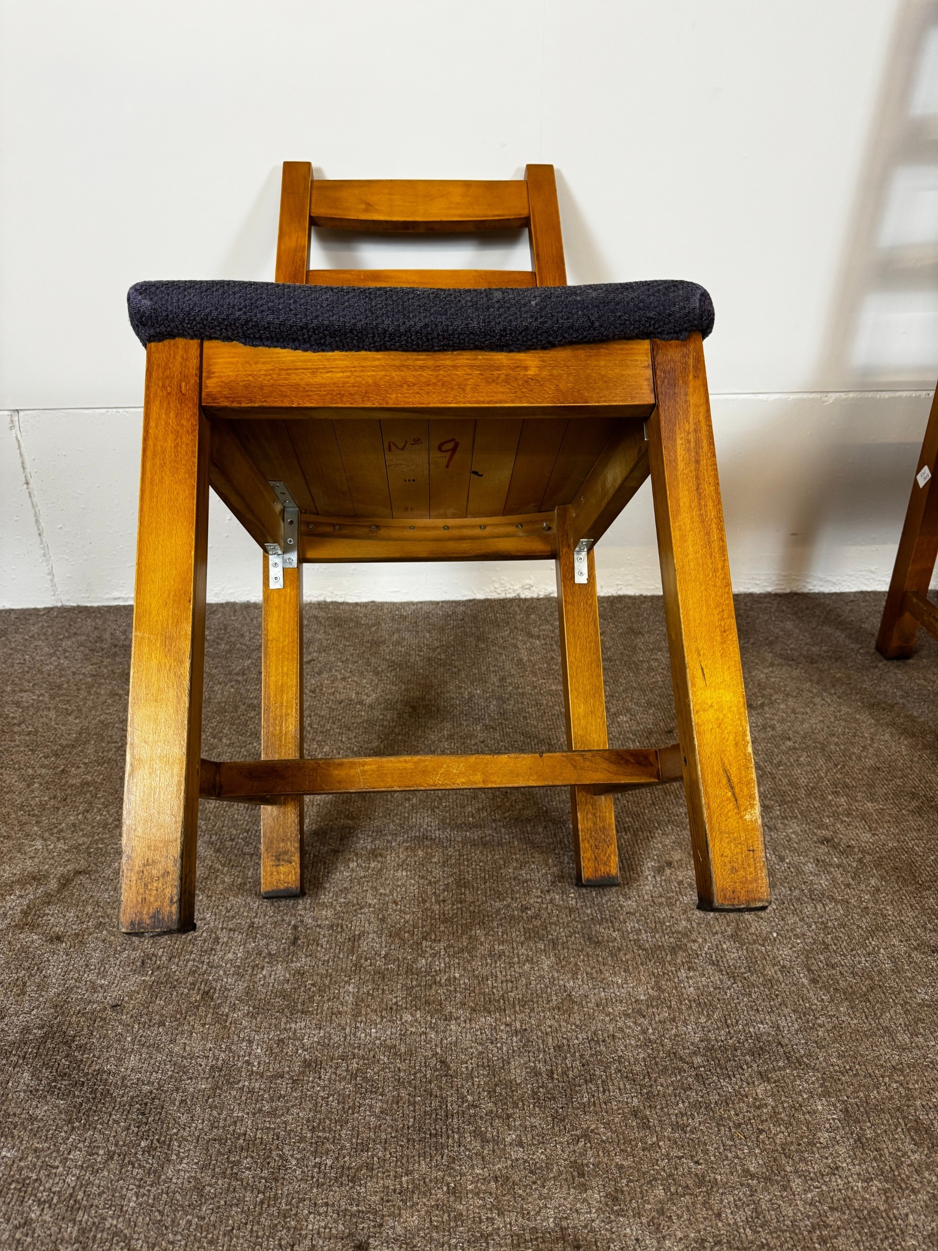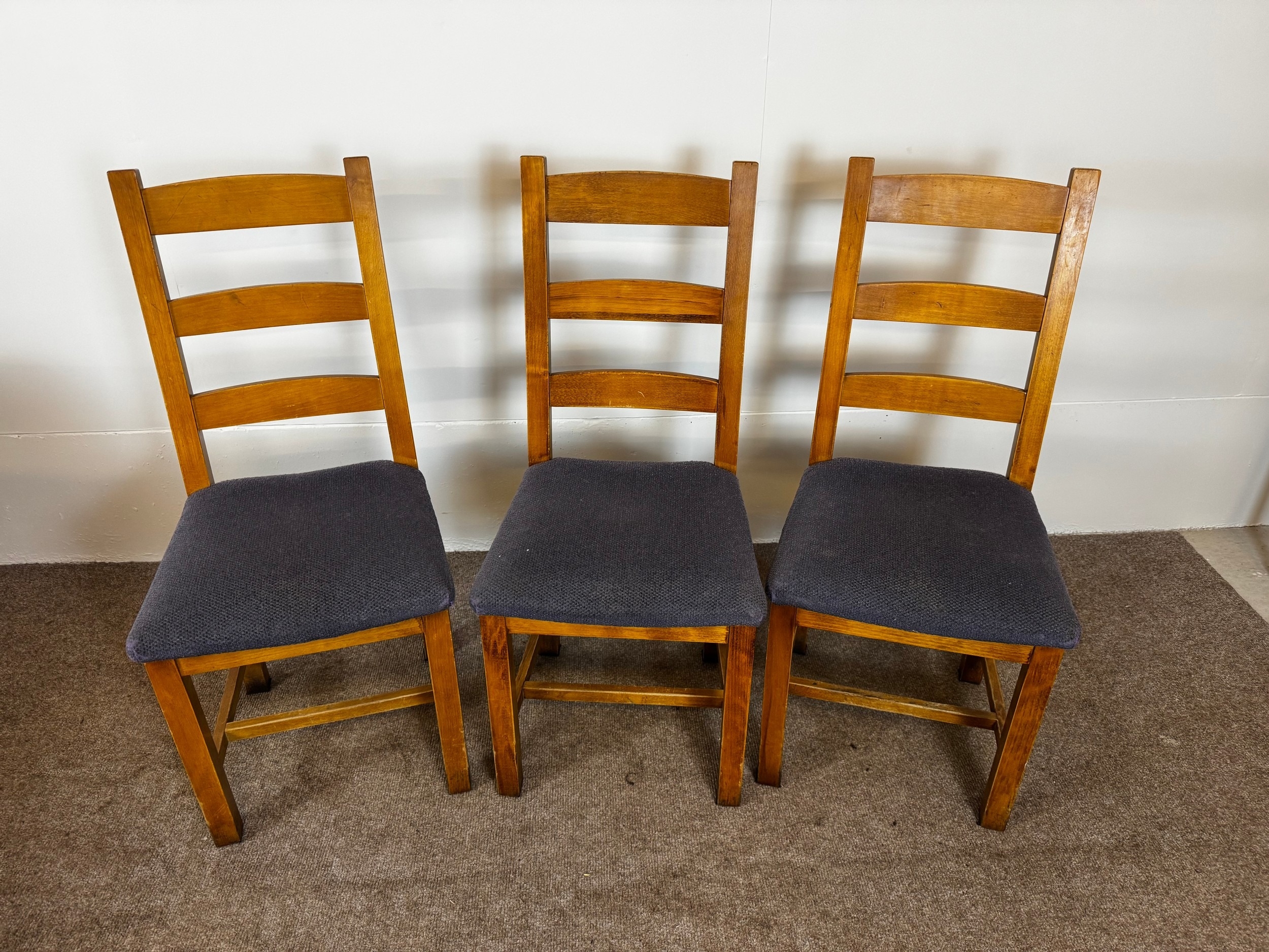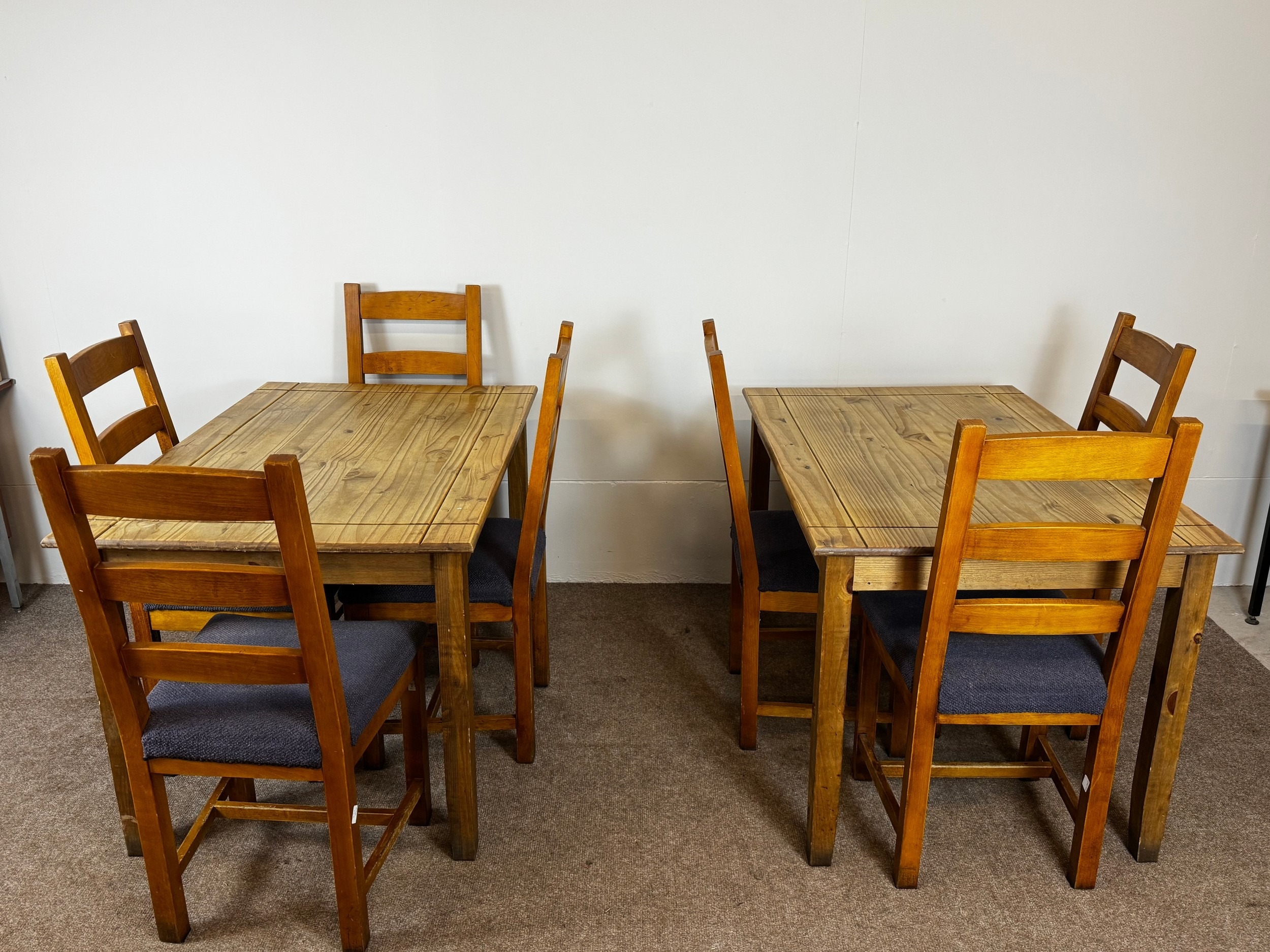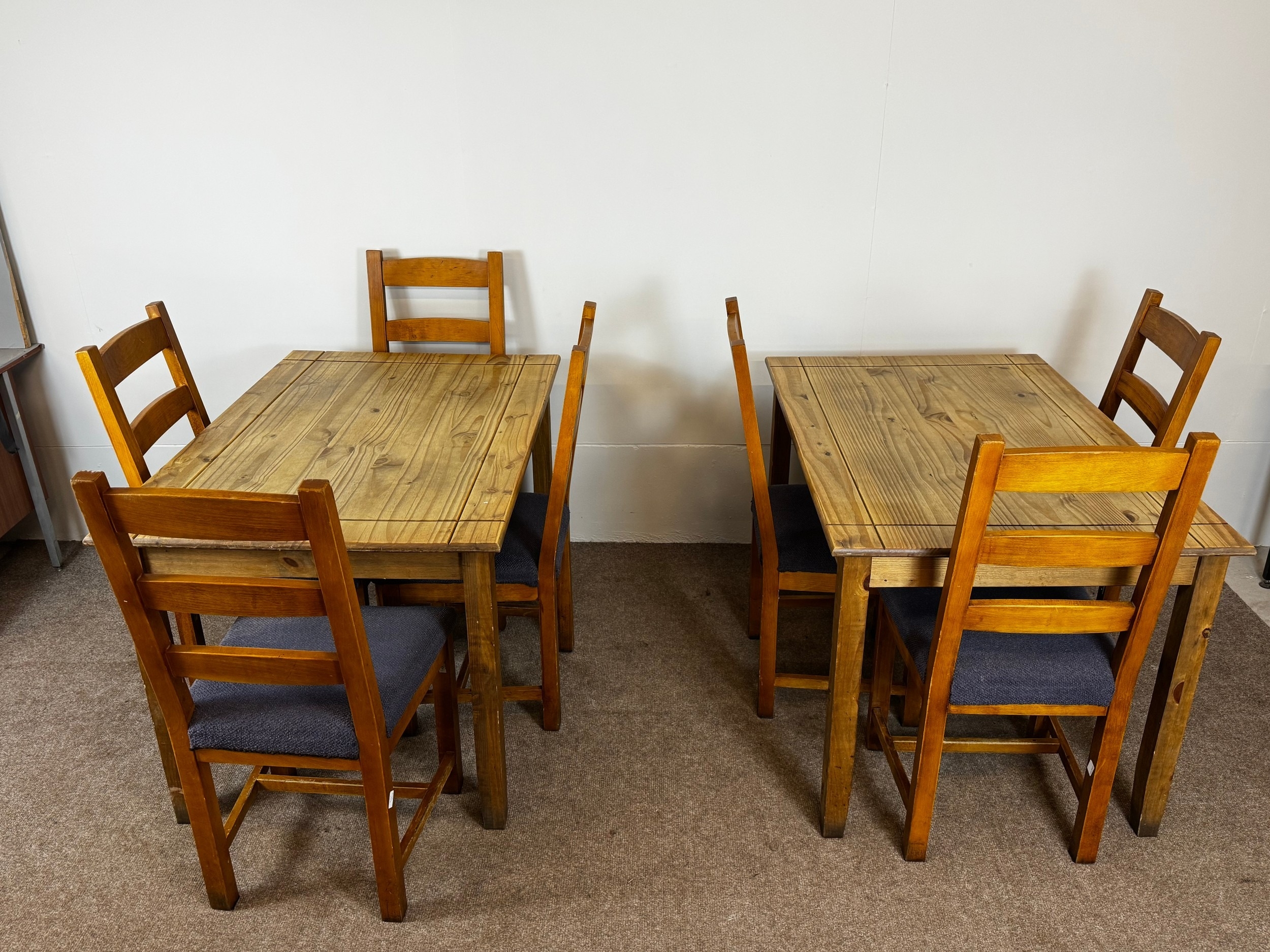 Two modern café/ bar dining tables, together with seven ladder back chairs (9).