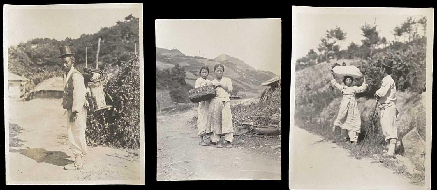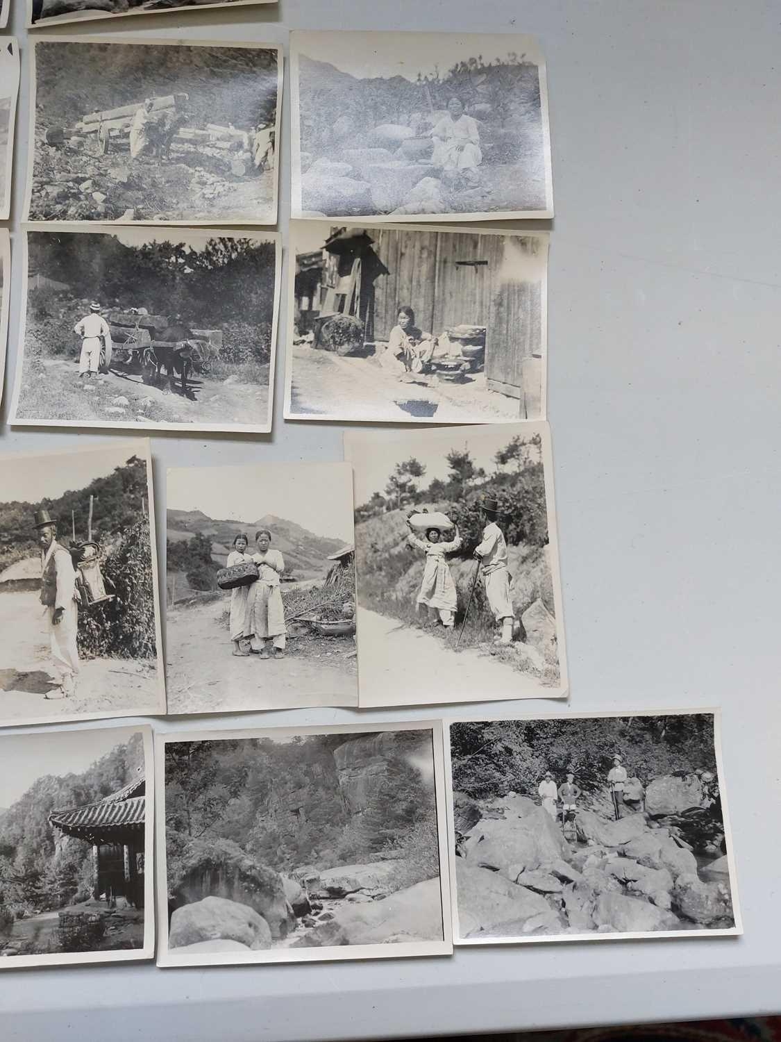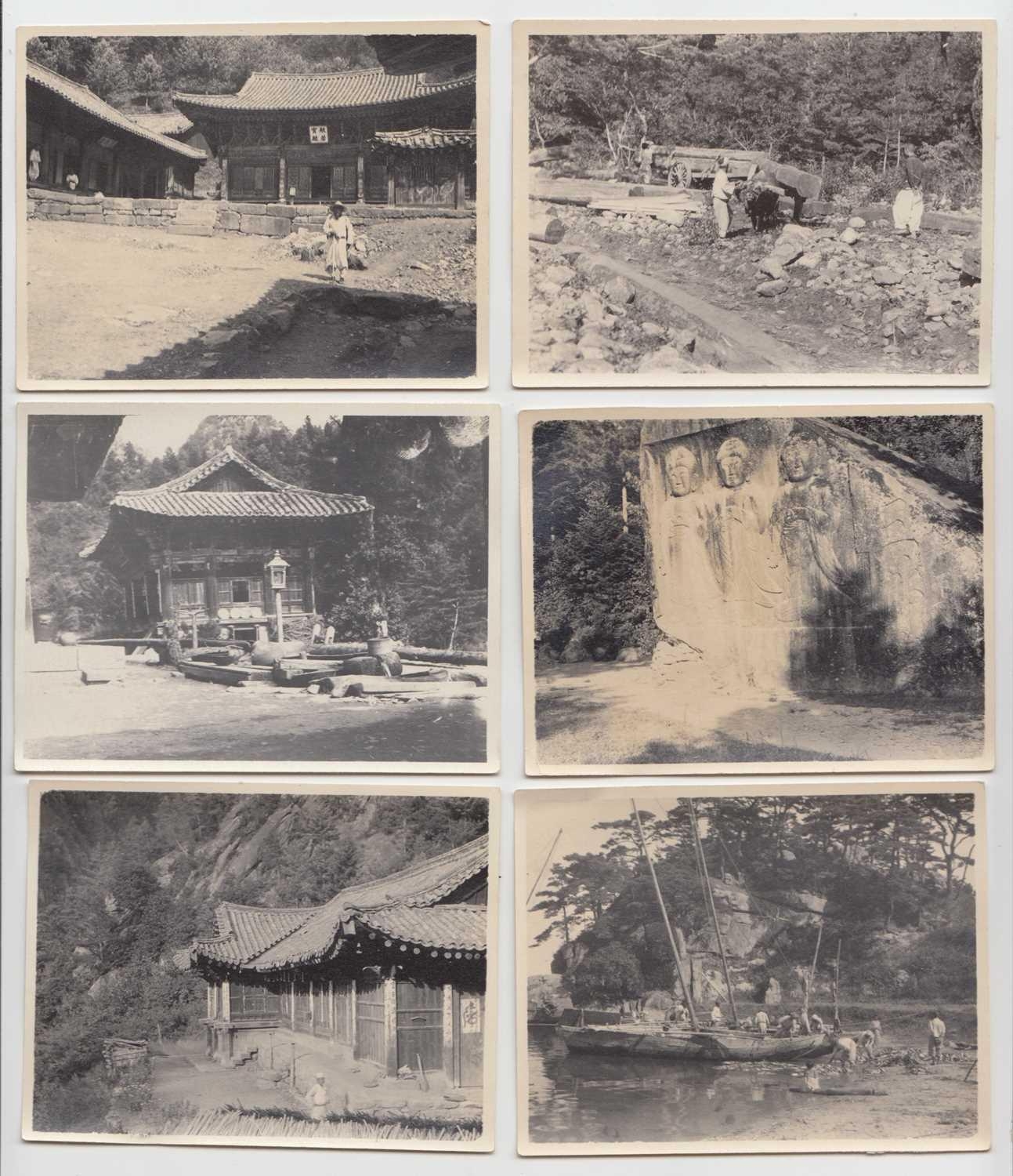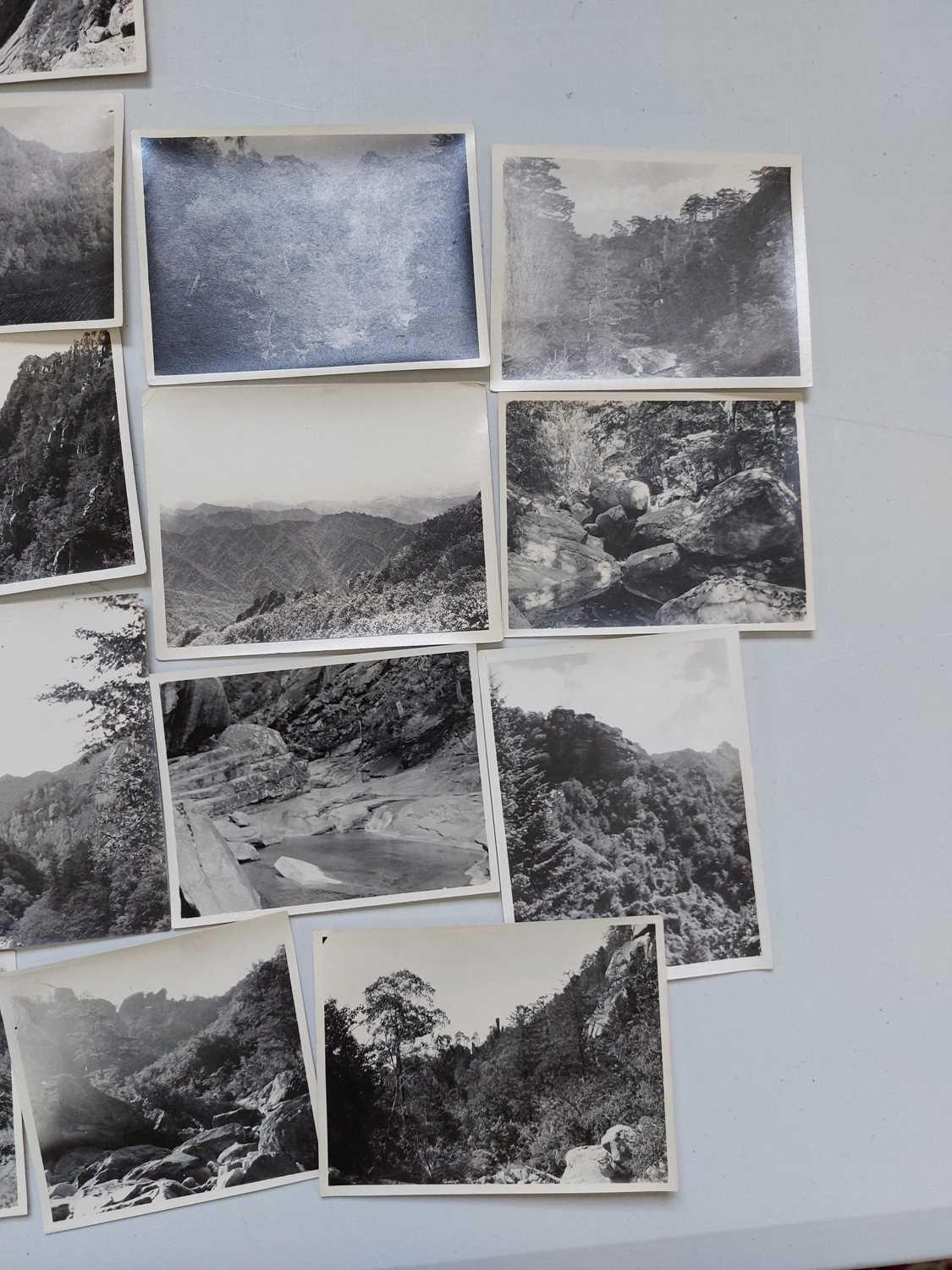 Early 20th century photographs. Mount Kumgang, Korea. A collection of one hundred and sixteen b+w photographs, showing the 'Diamond Mountain' region of Korea, including mountain scenes, many temples, priests, forests etc, shot by W. A. B. Leach using either a '3A Graflex' or a 'Thornton Pickard Special Ruby', between the years 1902-1925, (av) size 8cm x 10cm. (116)