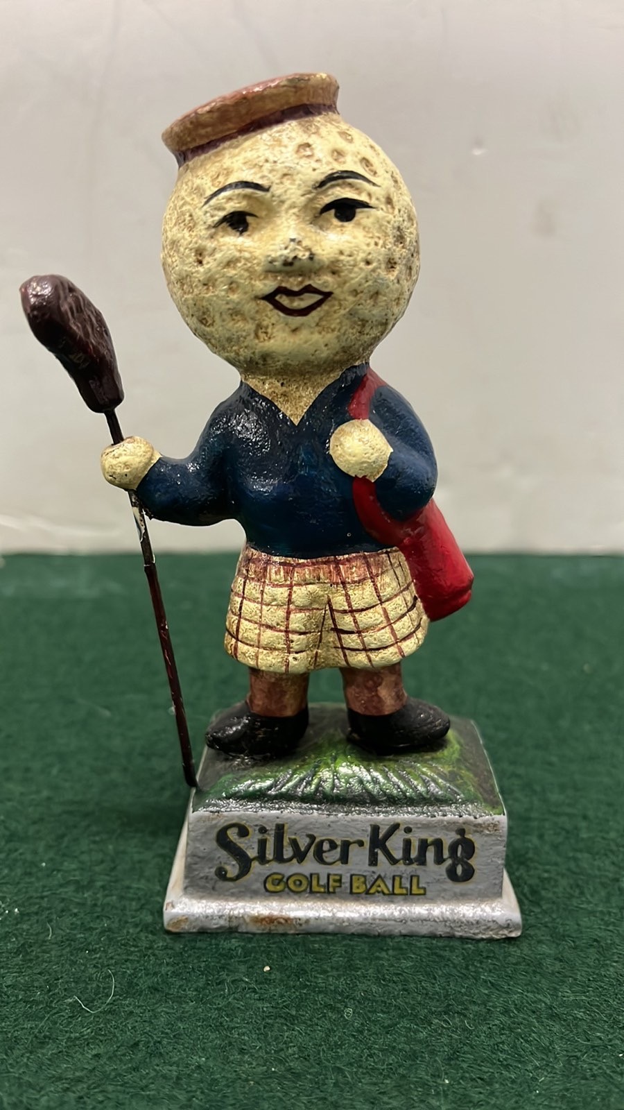 CAST METAL SILVER KING GOLF BALL FIGURE