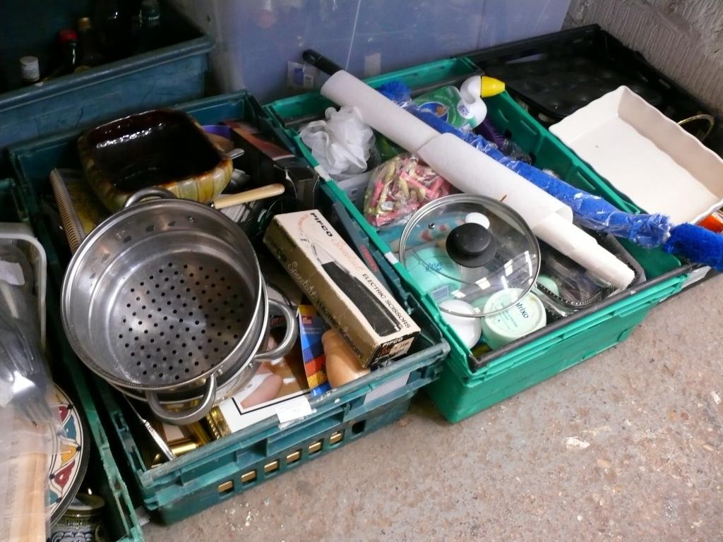 LARGE MIXED COLLECTION OF ITEMS = KITCHEN WARES, GADGETS, ;PCTURE FRAMES ETC
