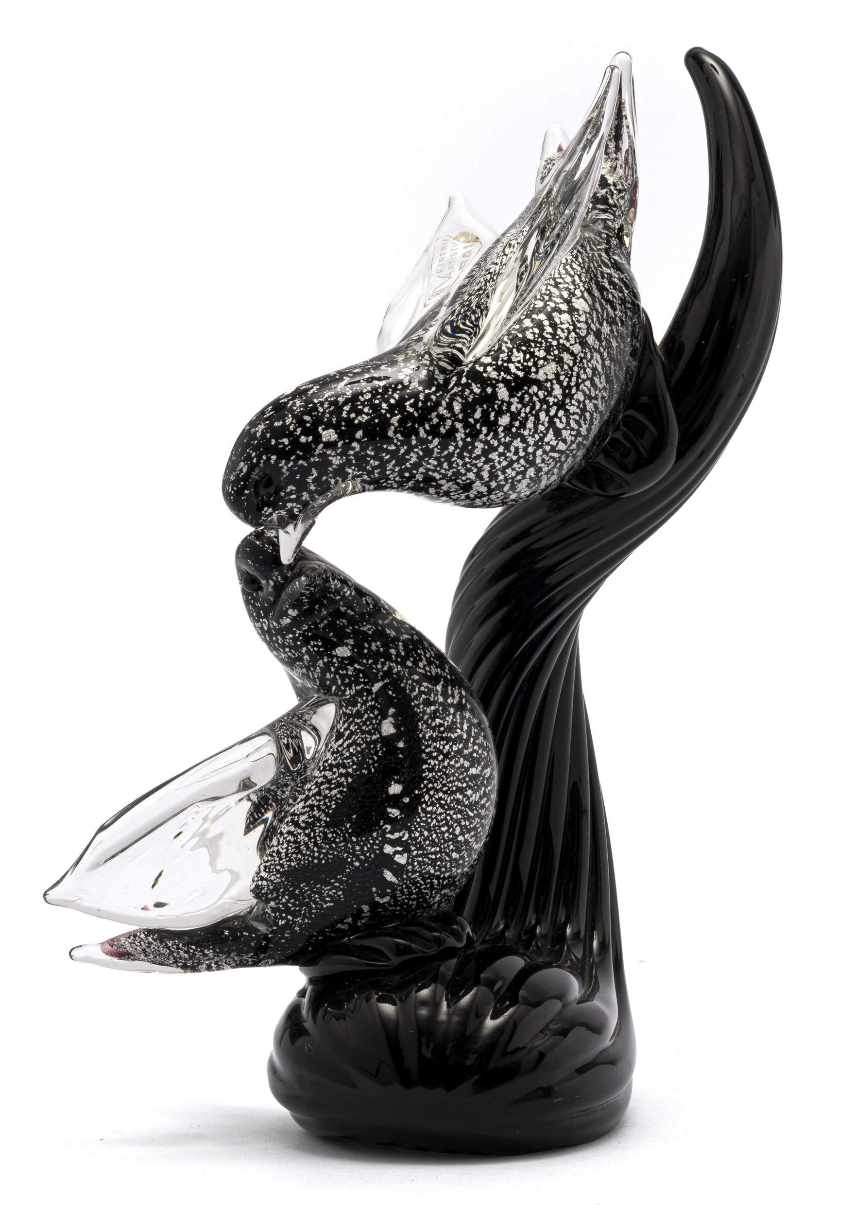 A MURANO GLASS STATUE OF TWO LOVE BIRDS