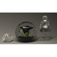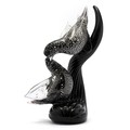 Black and white speckled pattern glass with silver leaf, featuring two birds perched on a twisted glass base