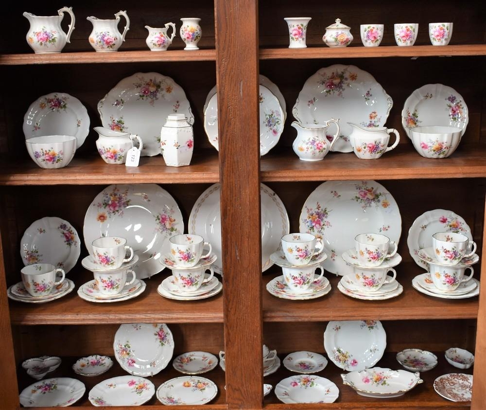 A Royal Crown Derby Posies pattern part tea service, comprising cups, saucers, side plates, milk jug, sugar bowl, bread and butter plates, etc; others, similar, dinner plates, jugs, egg cups, trinket dishes; etc