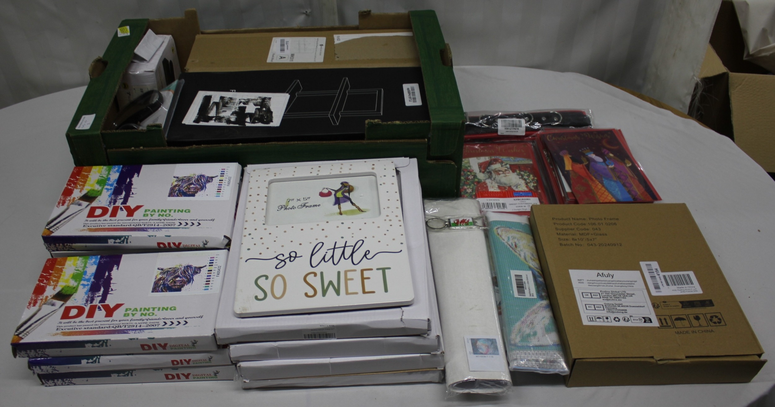 BOX OF MISCELLANEOUS INCLUDING ARTS, CRAFTS, PHOTO FRAMES, ETC