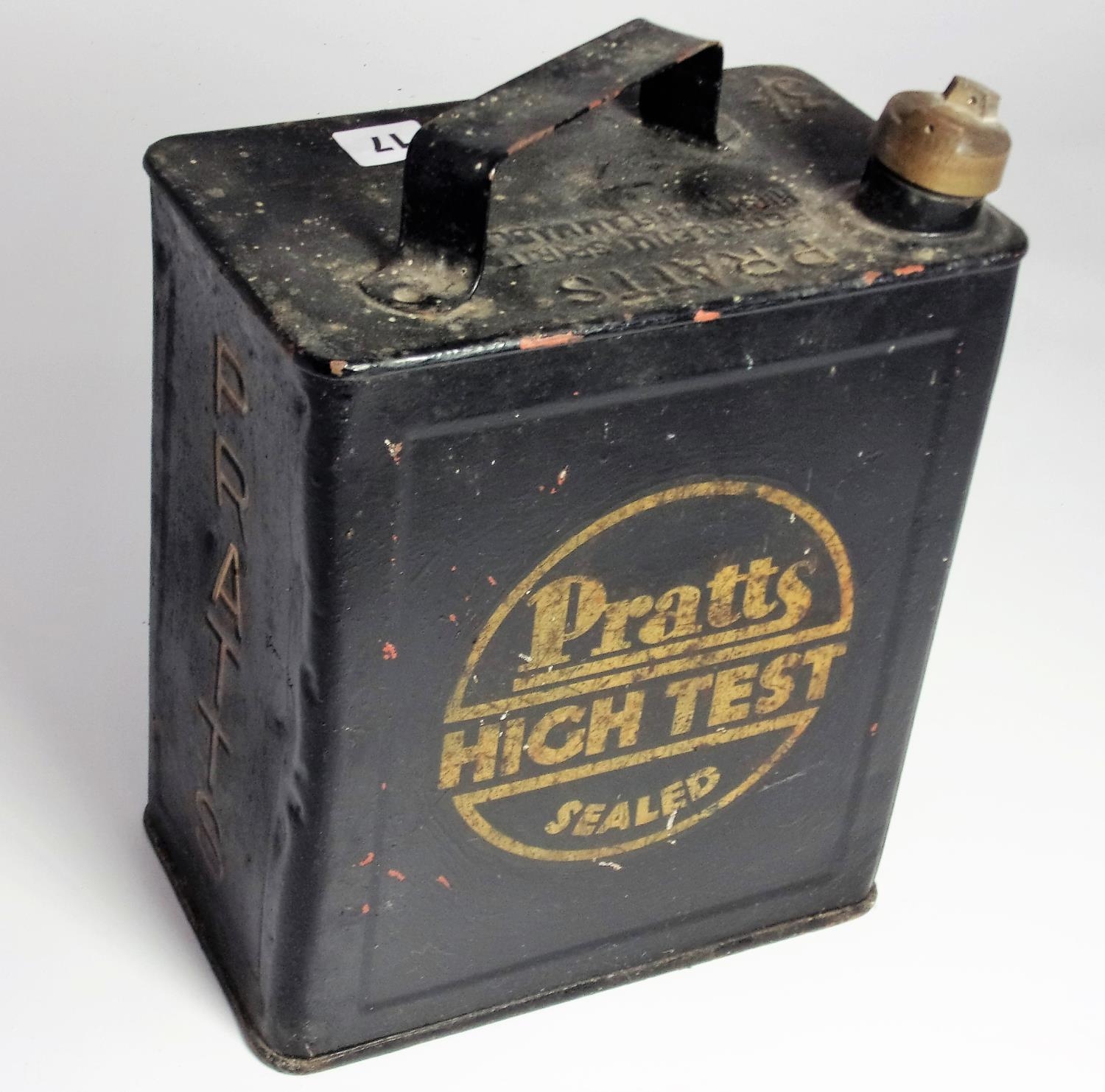 PRATTS PETROLEUM SPIRIT HIGHLY INFLAMMABLE 3 SHILLING PRATTS HIGH TEST SEALED BLACK PETROL CAN PART REPAINT