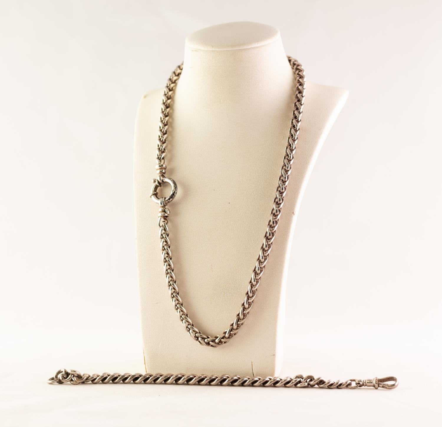 SILVER BRAIDED NECKLACE and a silver curb link BRACELET, 3 ozs all in