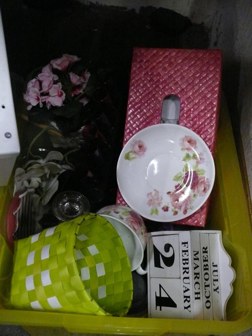 3 mixed boxes of decorative items and kitchenware